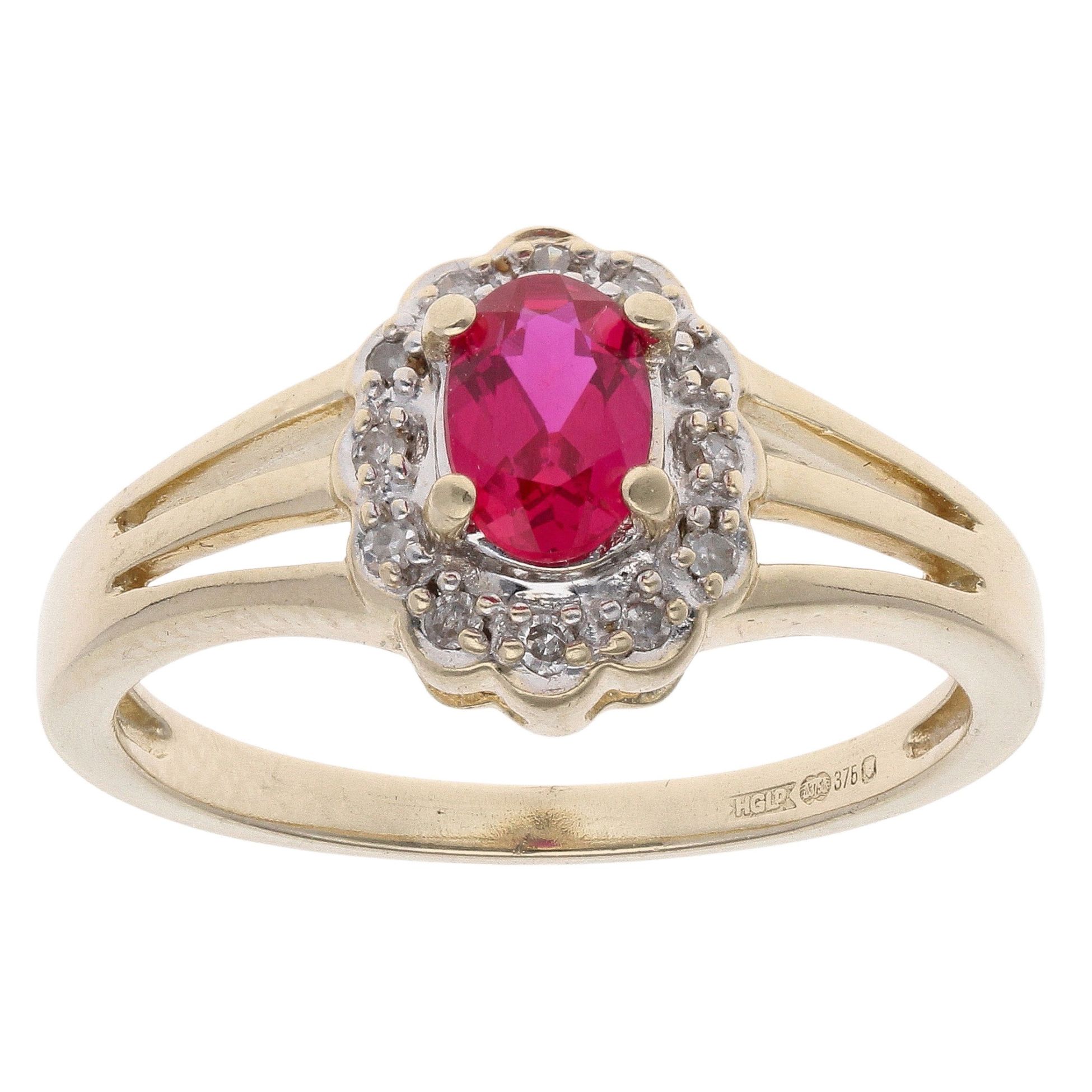 9ct Yellow Gold 0.05ct Diamond and Created Ruby Cluster Ring