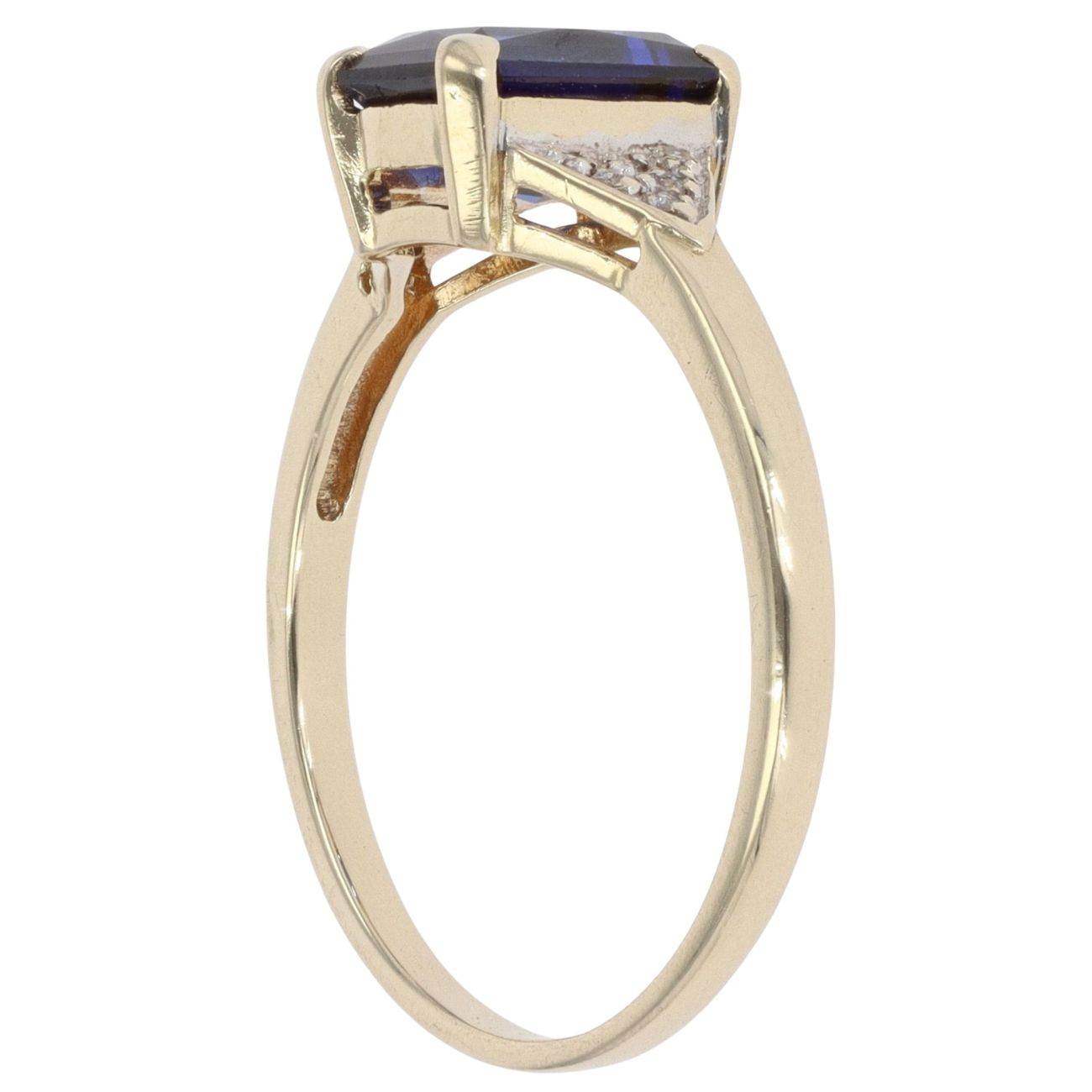 9ct Yellow Gold 0.05ct Diamond and Created Sapphire Solitaire Ring