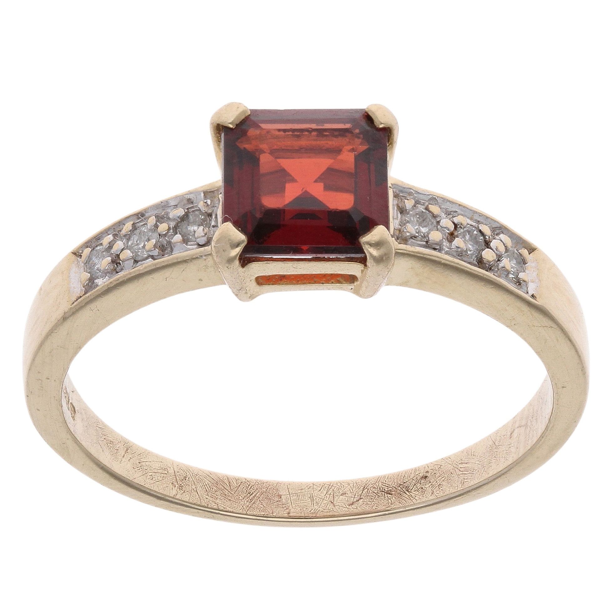 9ct Yellow Gold 0.05ct Diamond And Garnet Solitaire Ring