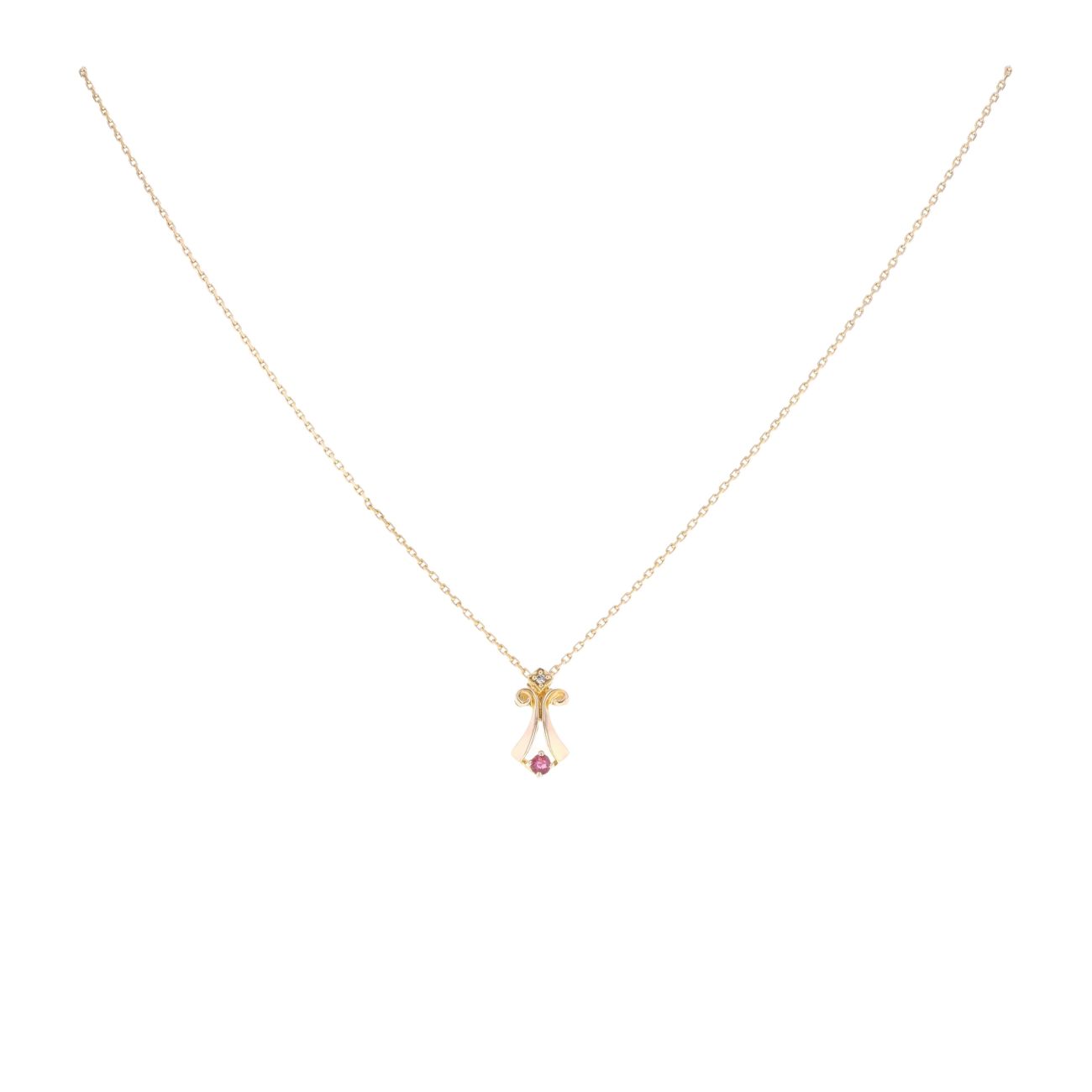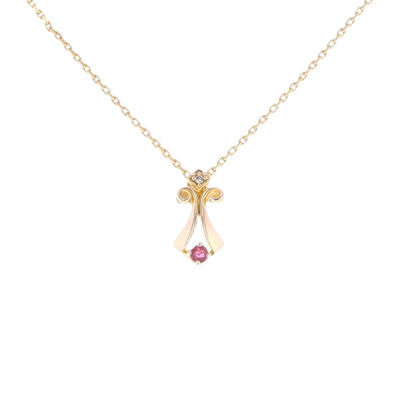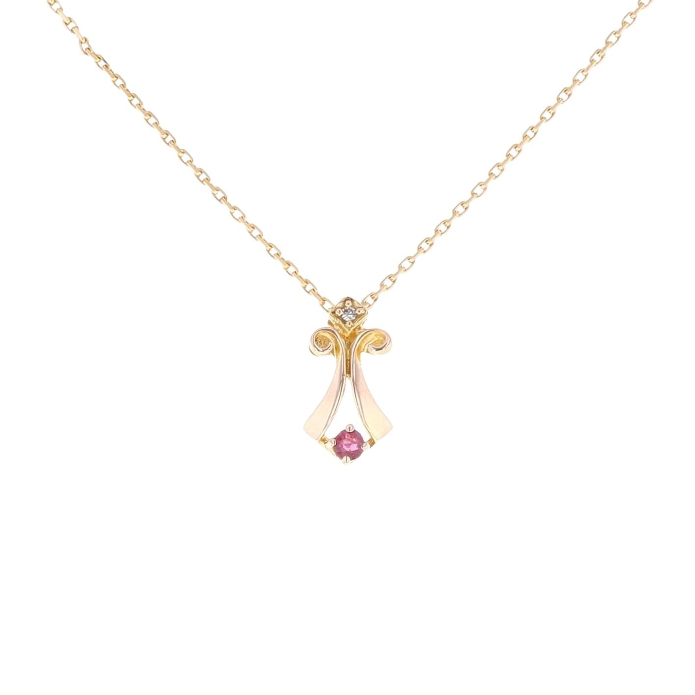 9ct Yellow Gold 0.05ct Diamond And Pink Gemstone Pendant And Chain 16"