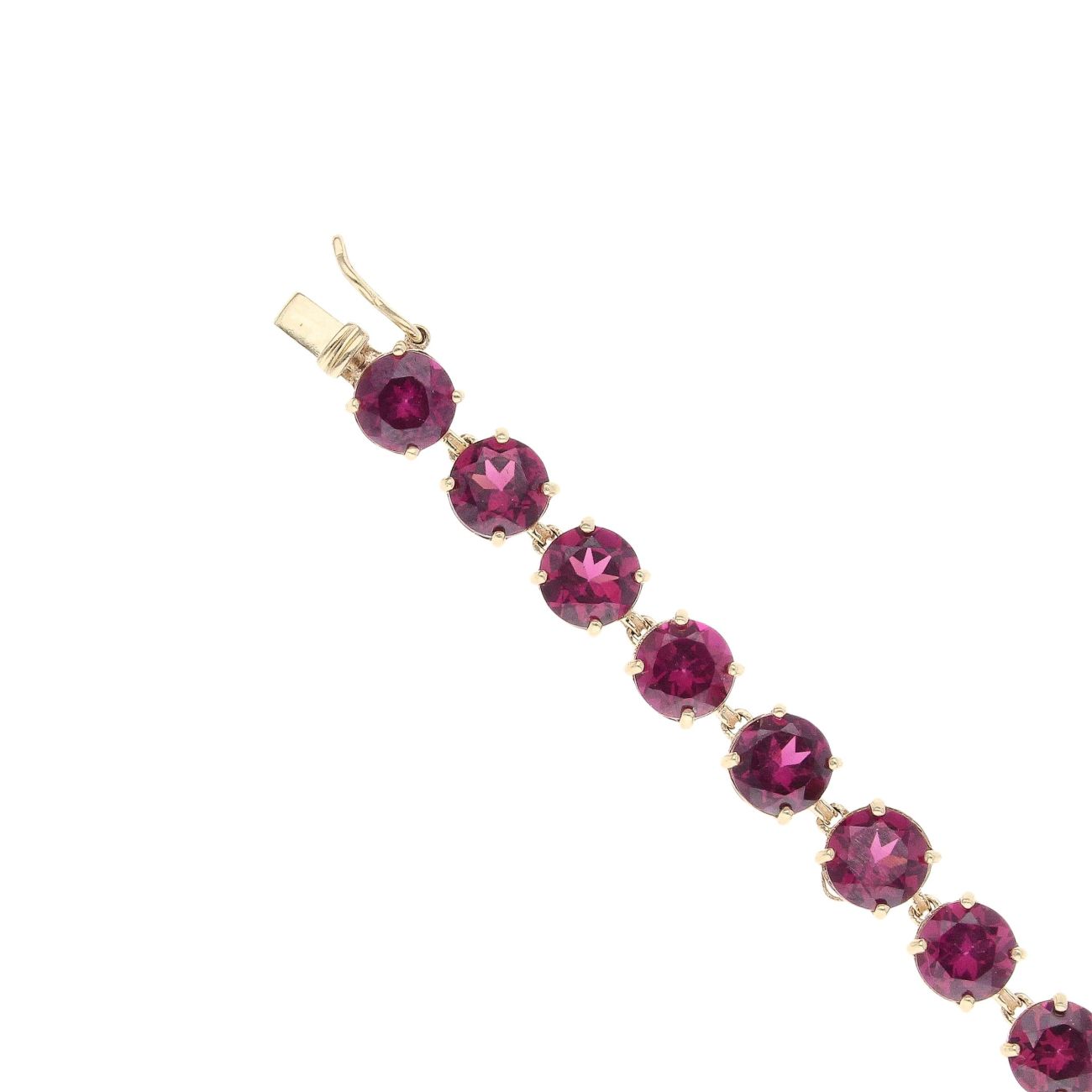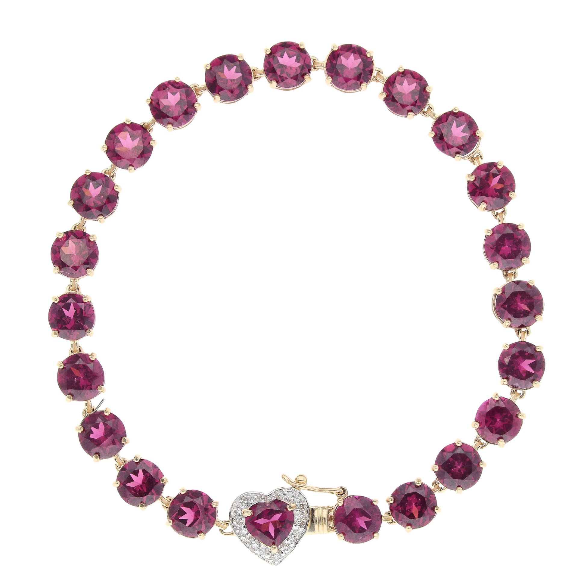 9ct Yellow Gold 0.05ct Diamond And Purple Garnet Heart Cluster Bracelet 7"