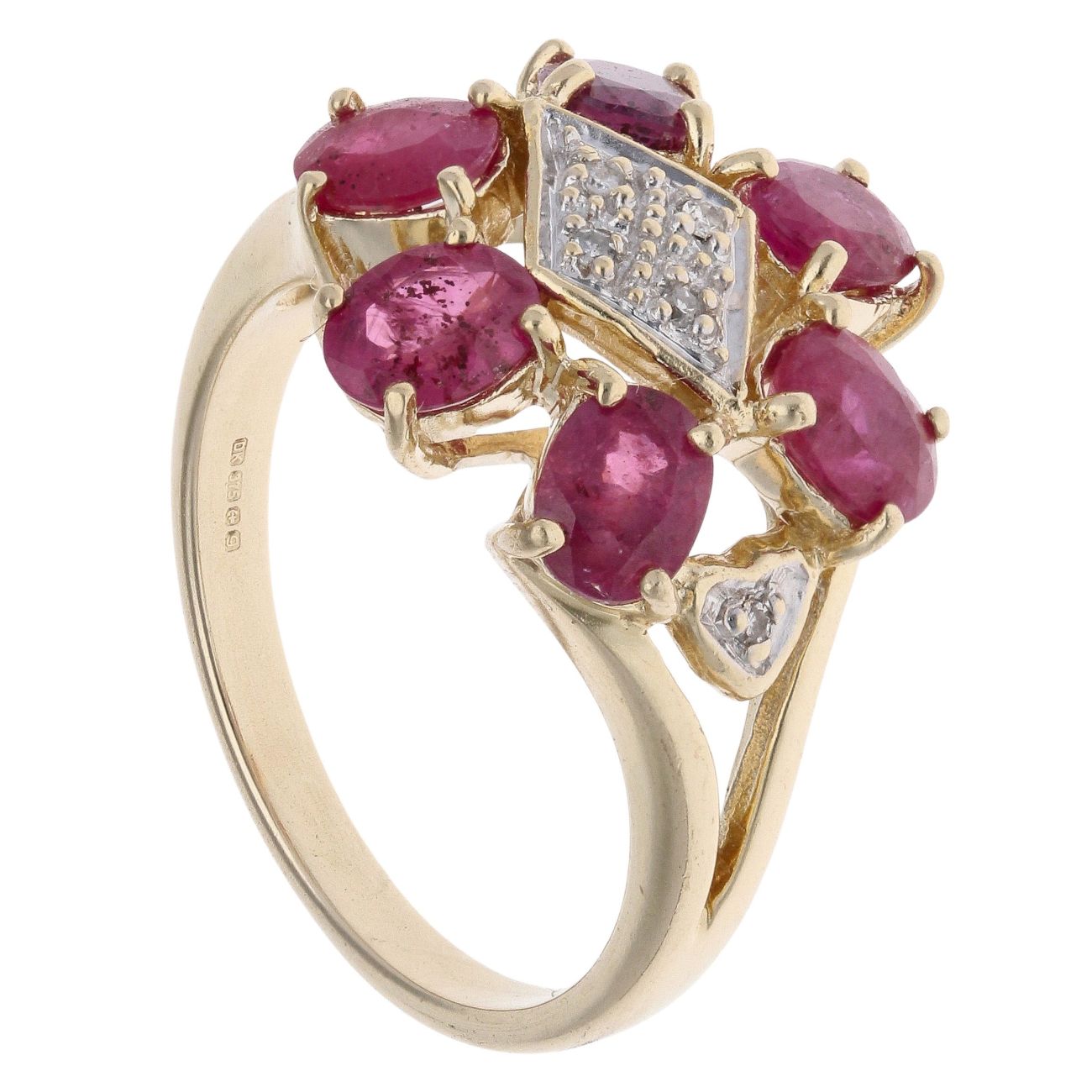 9ct Yellow Gold 0.05ct Diamond and Ruby Cluster Ring