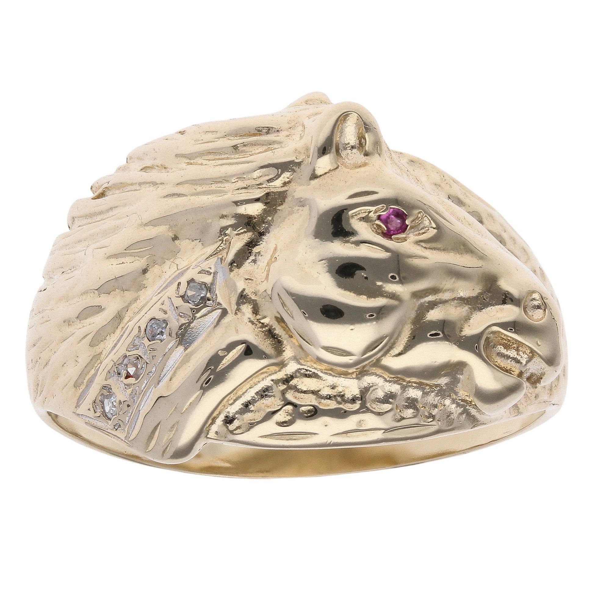 9ct Yellow Gold 0.05ct Diamond And Ruby Horse Ring