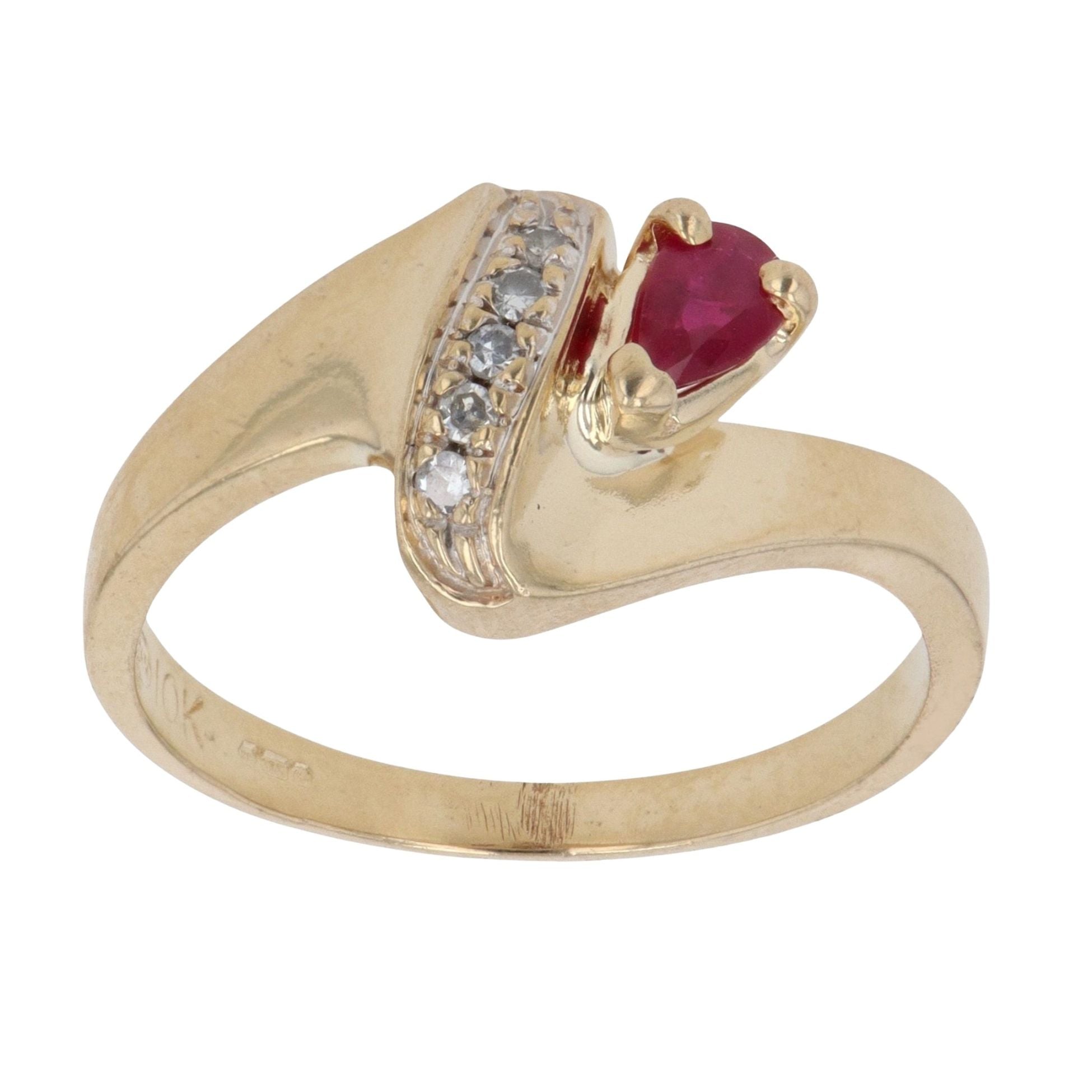 9ct Yellow Gold 0.05ct Diamond And Ruby Ring
