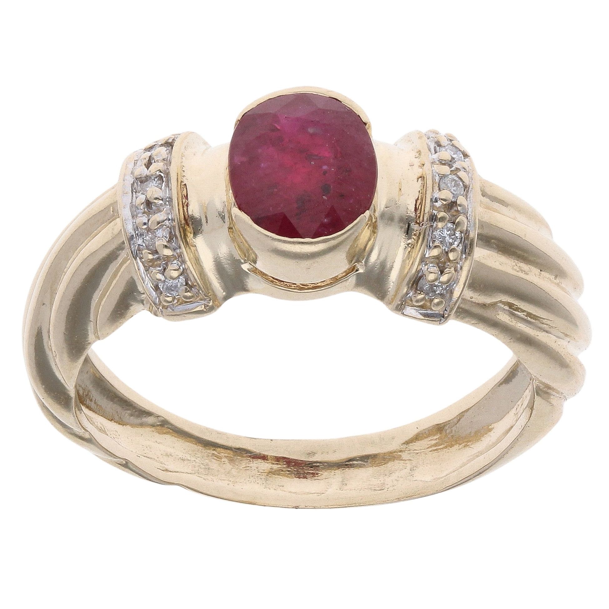 9ct Yellow Gold 0.05ct Diamond And Ruby Ring