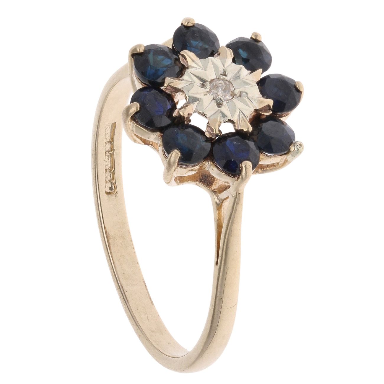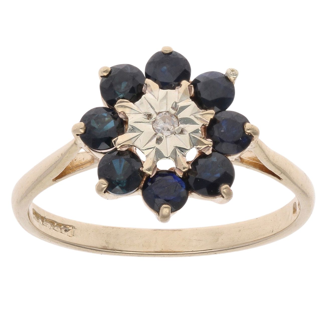 9ct Yellow Gold 0.05ct Diamond And Sapphire Cluster Ring