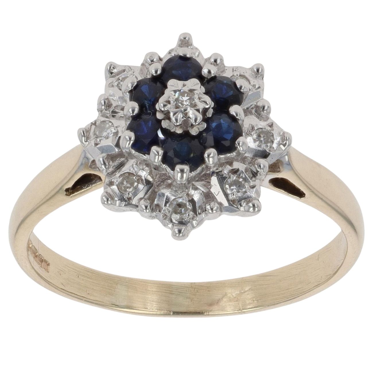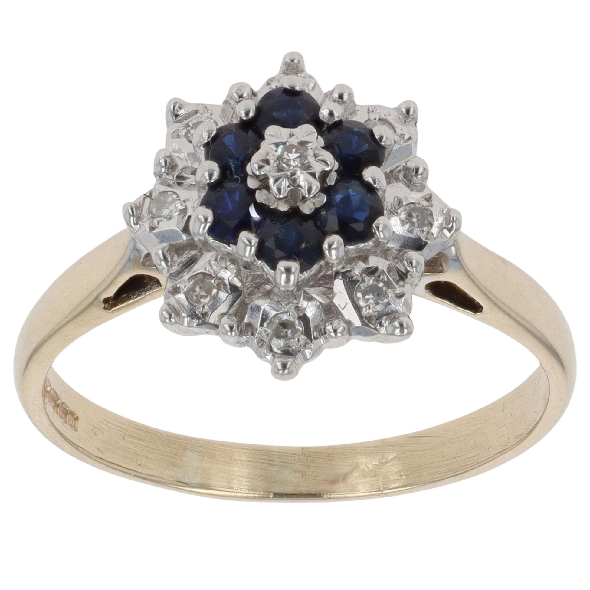 9ct Yellow Gold 0.05ct Diamond And Sapphire Cluster Ring