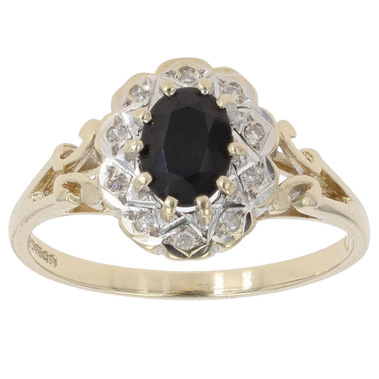 9ct Yellow Gold 0.05ct Diamond And Sapphire Cluster Ring