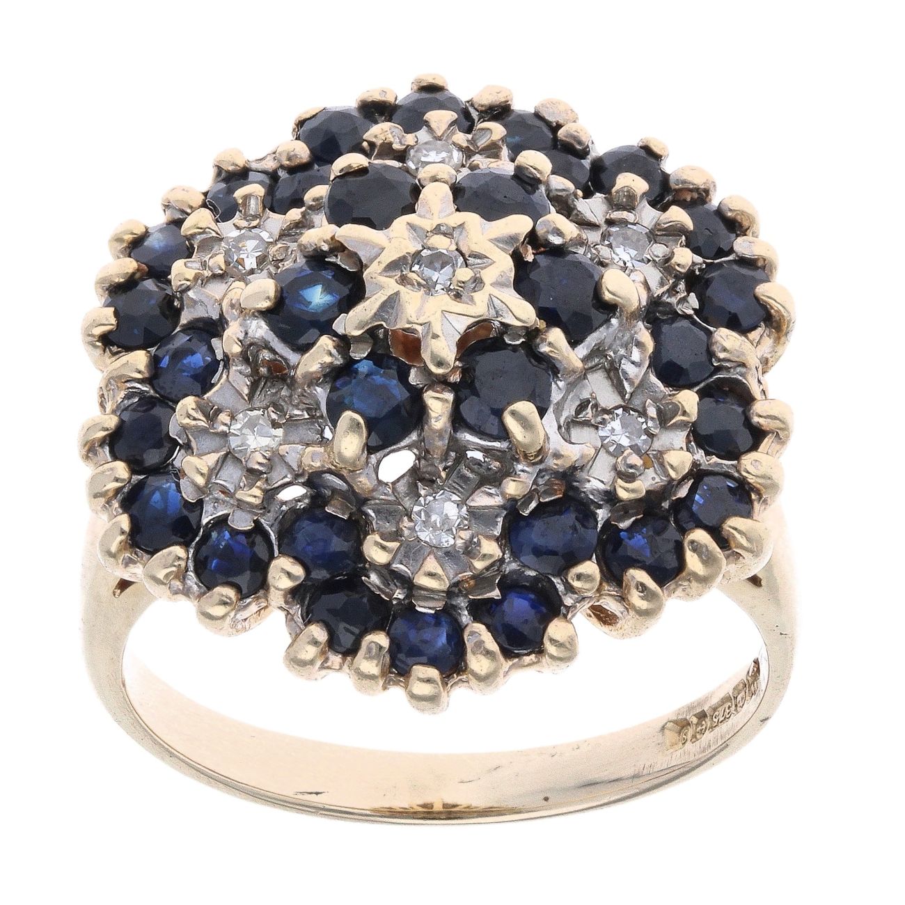 9ct Yellow Gold 0.05ct Diamond and Sapphire Cluster Ring