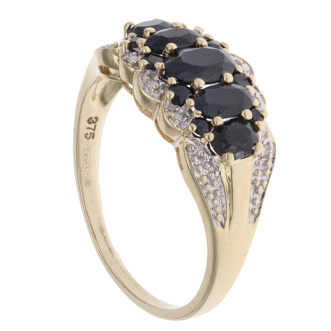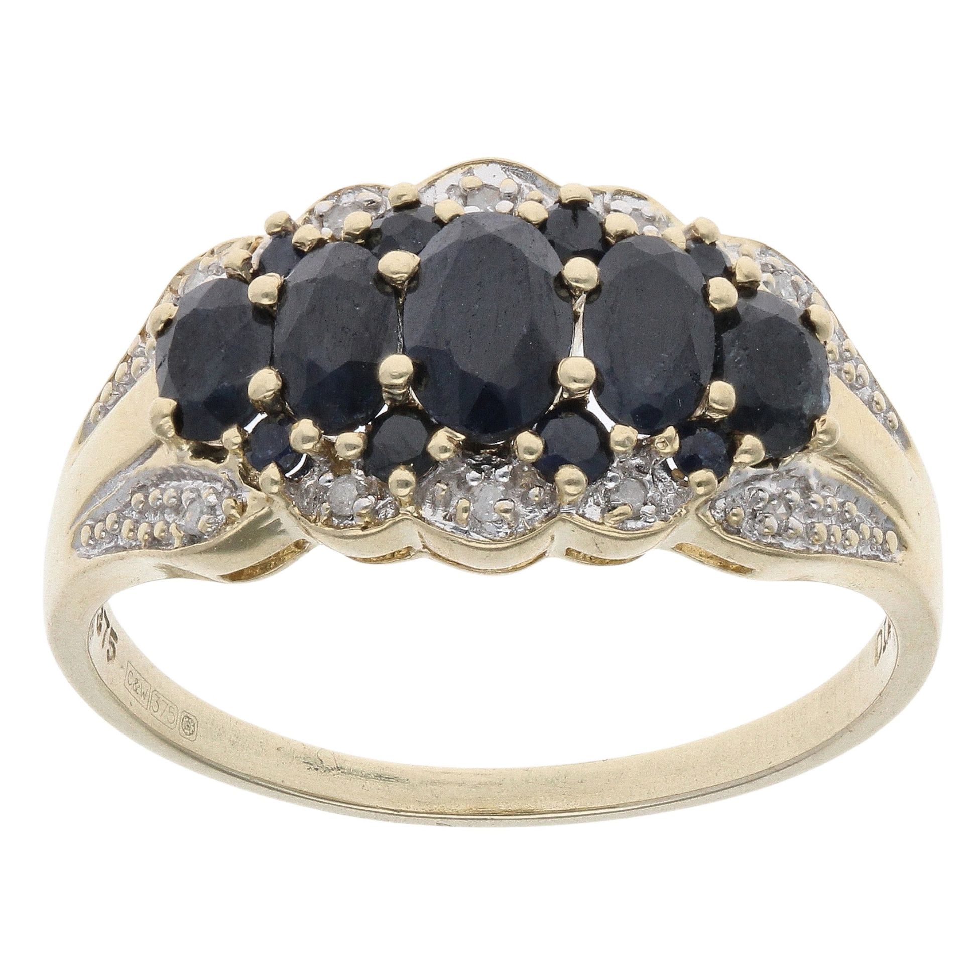 9ct Yellow Gold 0.05ct Diamond and Sapphire Fancy Ring