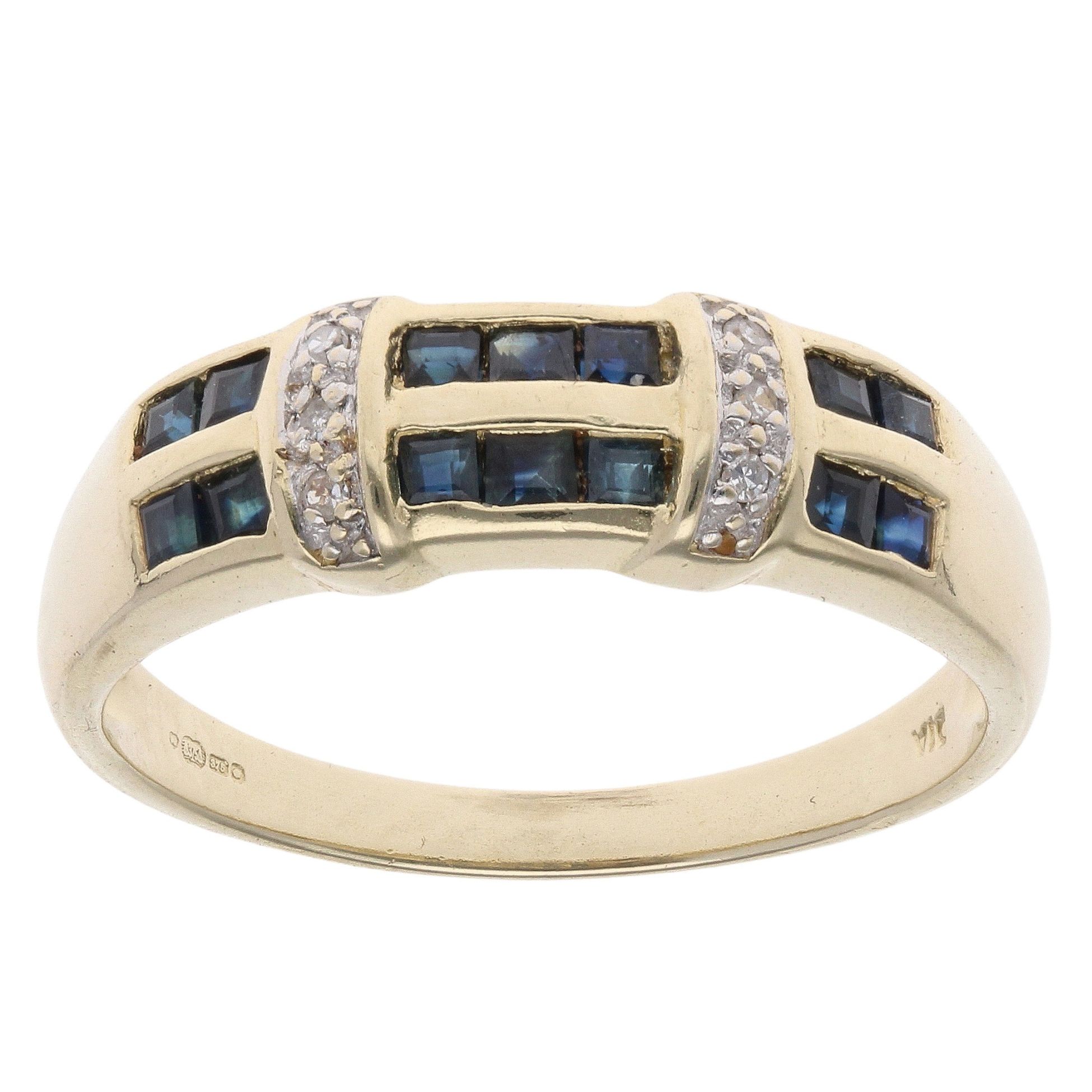 9ct Yellow Gold 0.05ct Diamond And Sapphire Ring