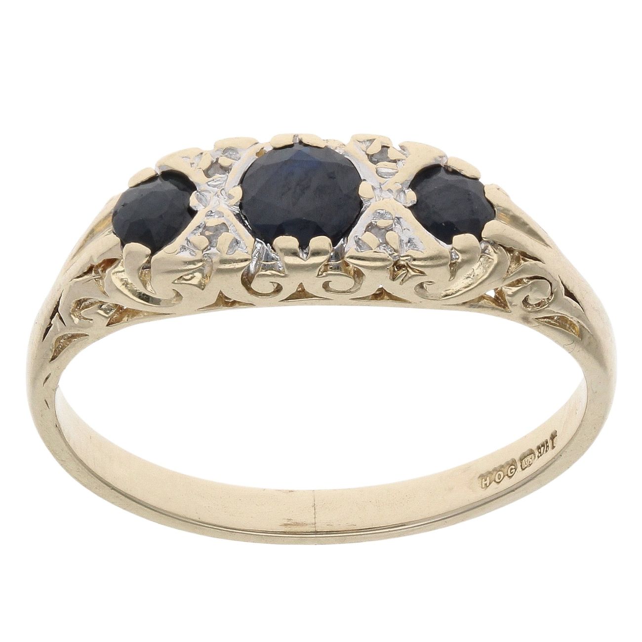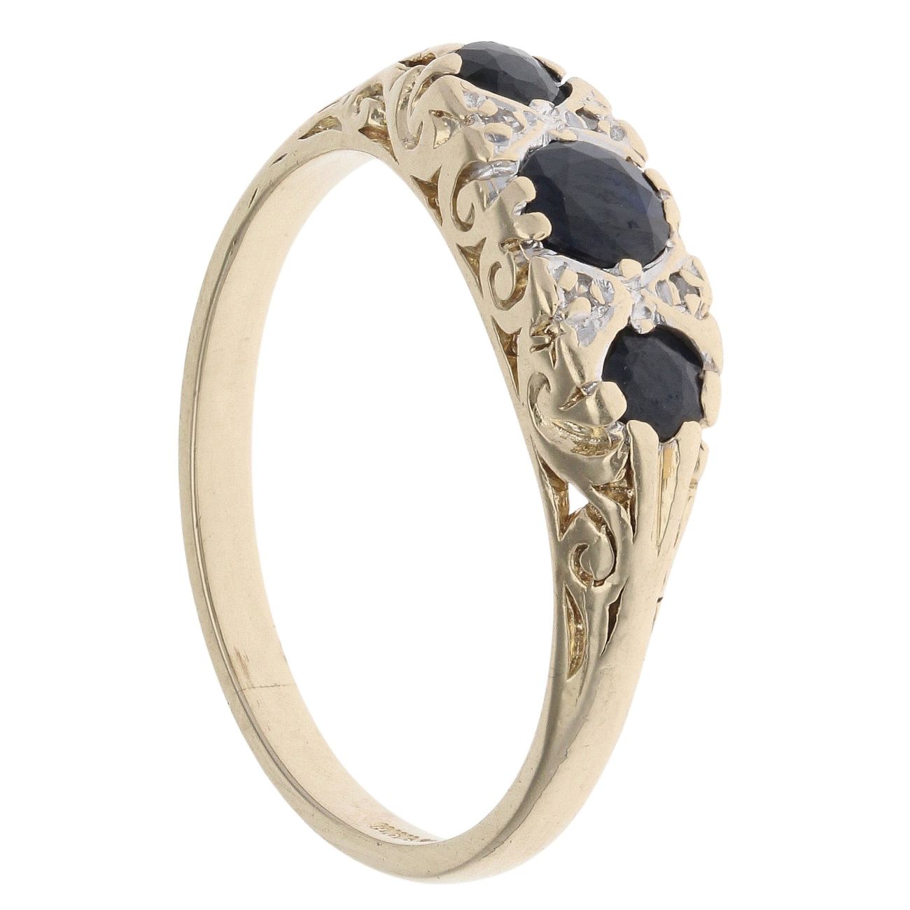 9ct Yellow Gold 0.05ct Diamond And Sapphire Three Stone Ring