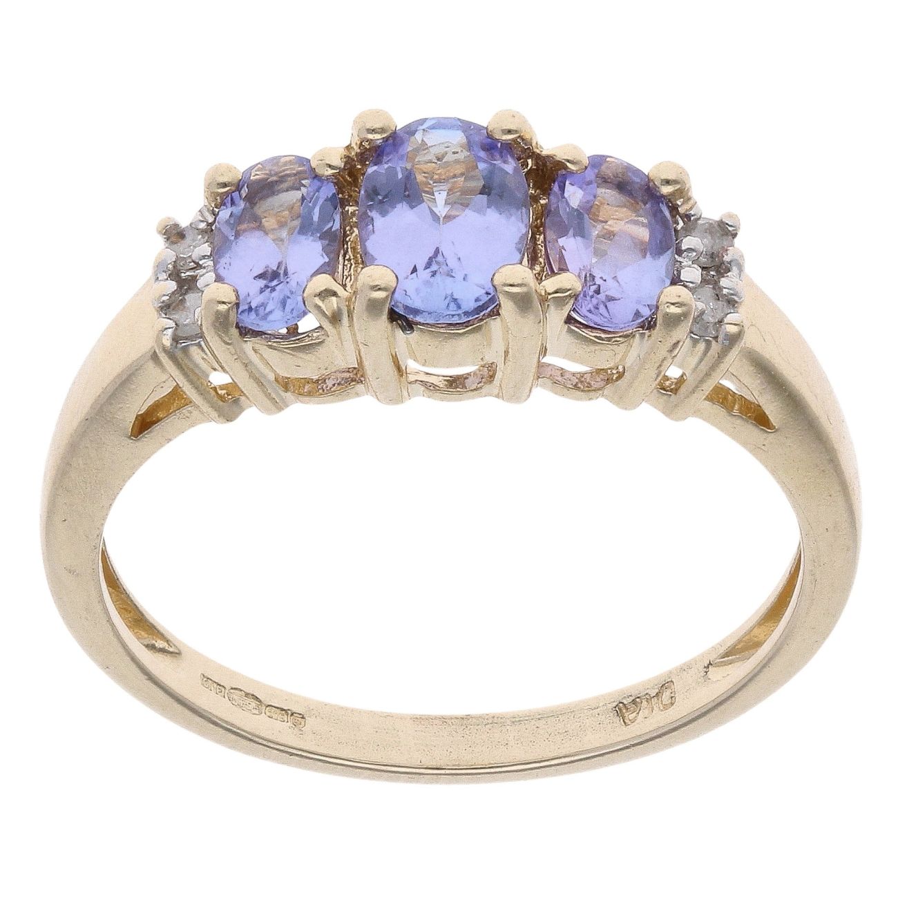 9ct Yellow Gold 0.05ct Diamond And Three Stone Tanzanite Ring