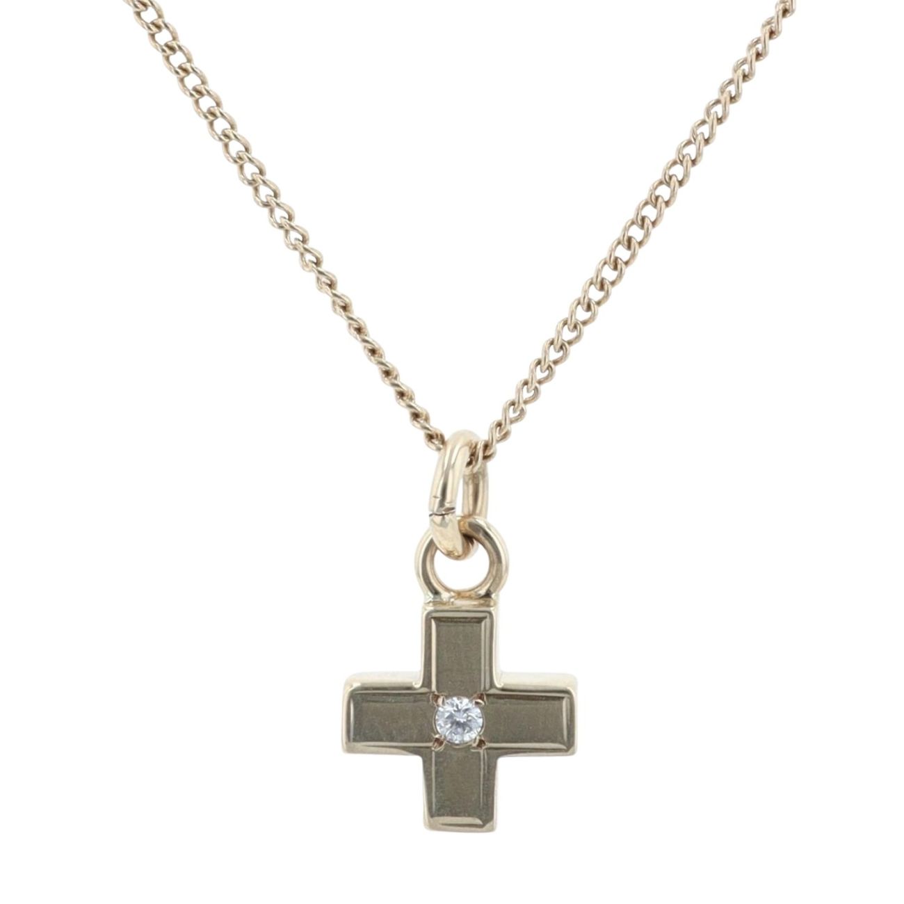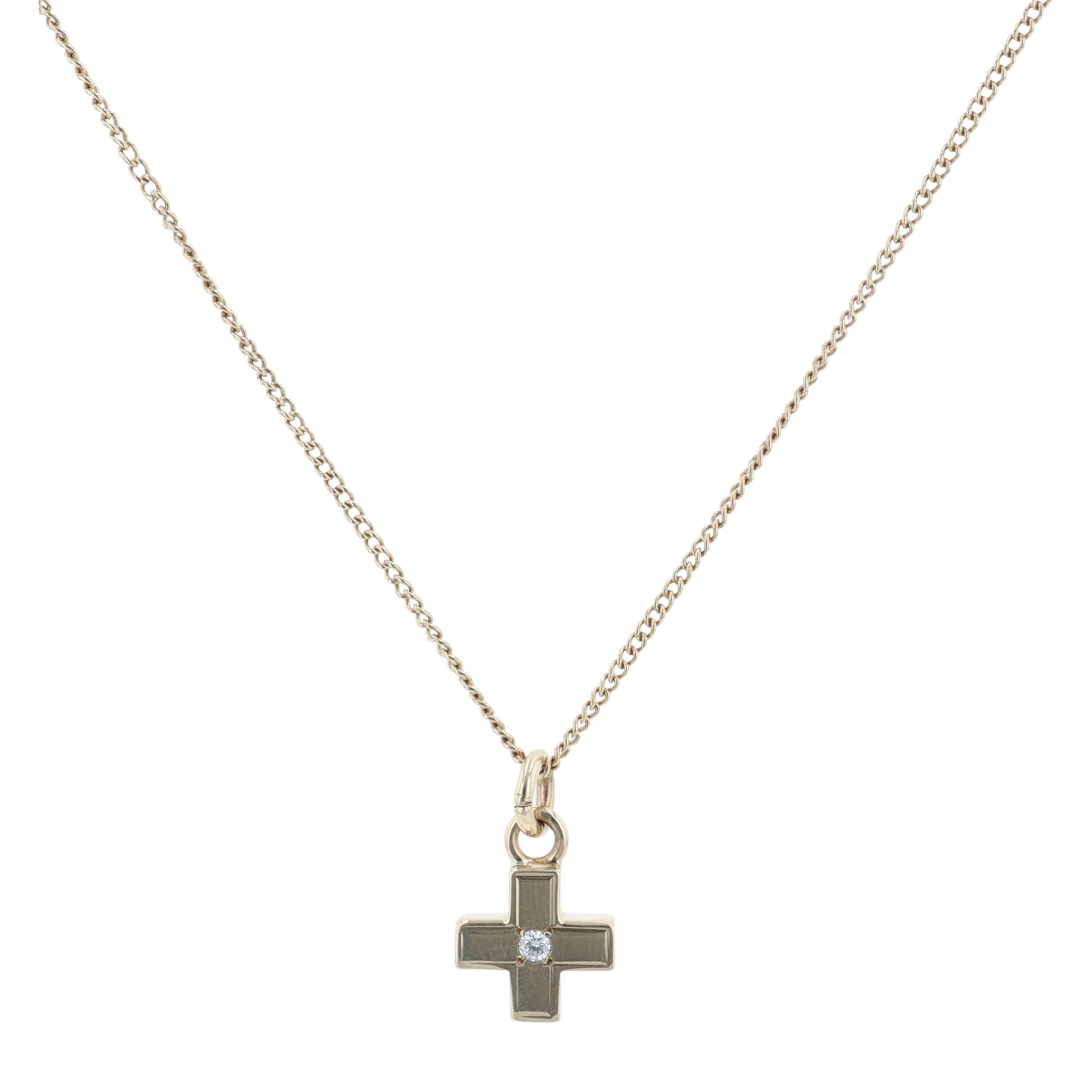 9ct Yellow Gold 0.05ct Diamond Cross Pendant And Chain 20"