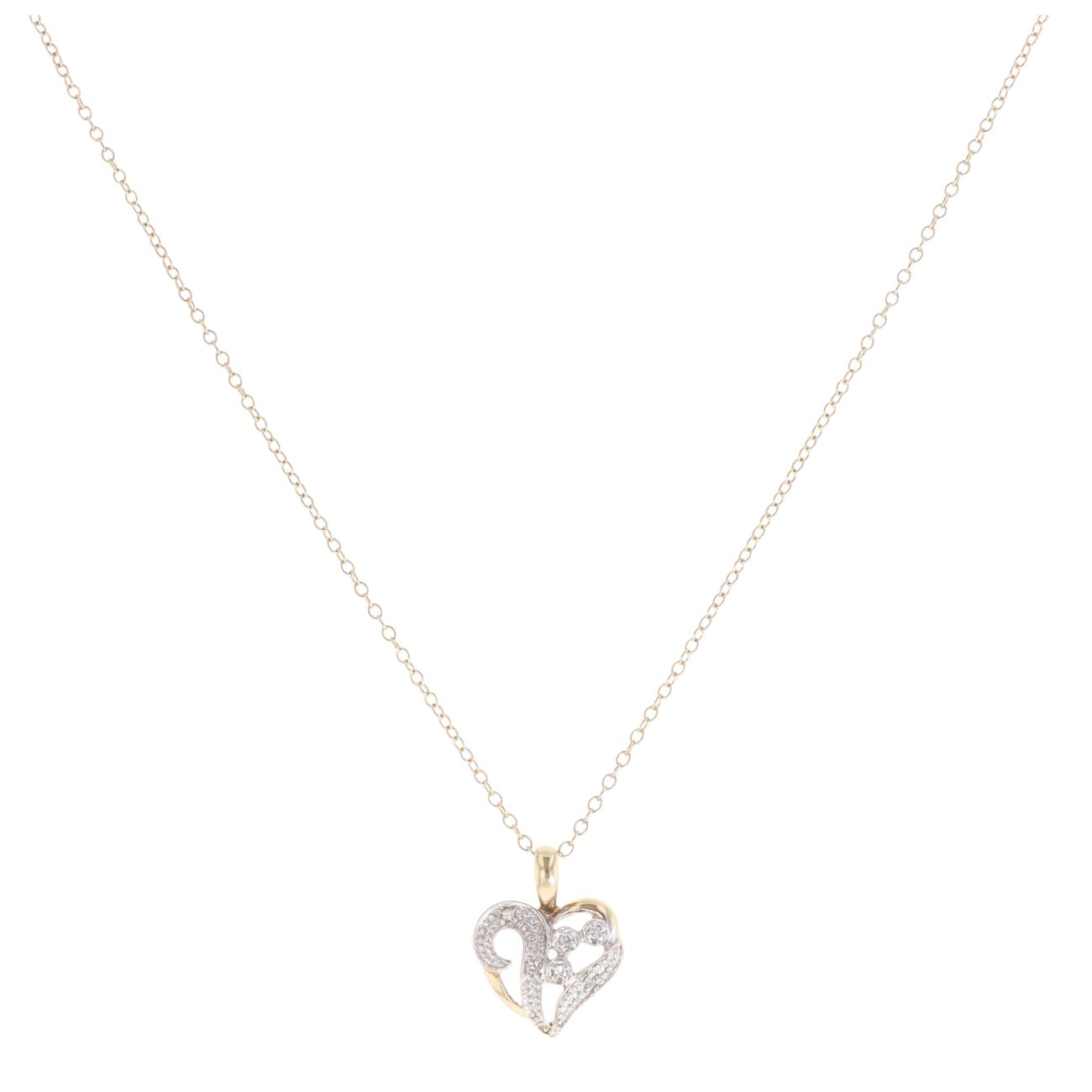 9ct Yellow Gold 0.05ct Diamond Heart Pendant and Chain 20"