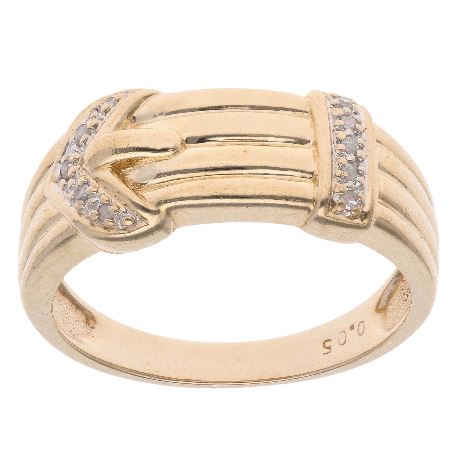 9ct Yellow Gold 0.05ct Diamond Patterned Buckle Ring