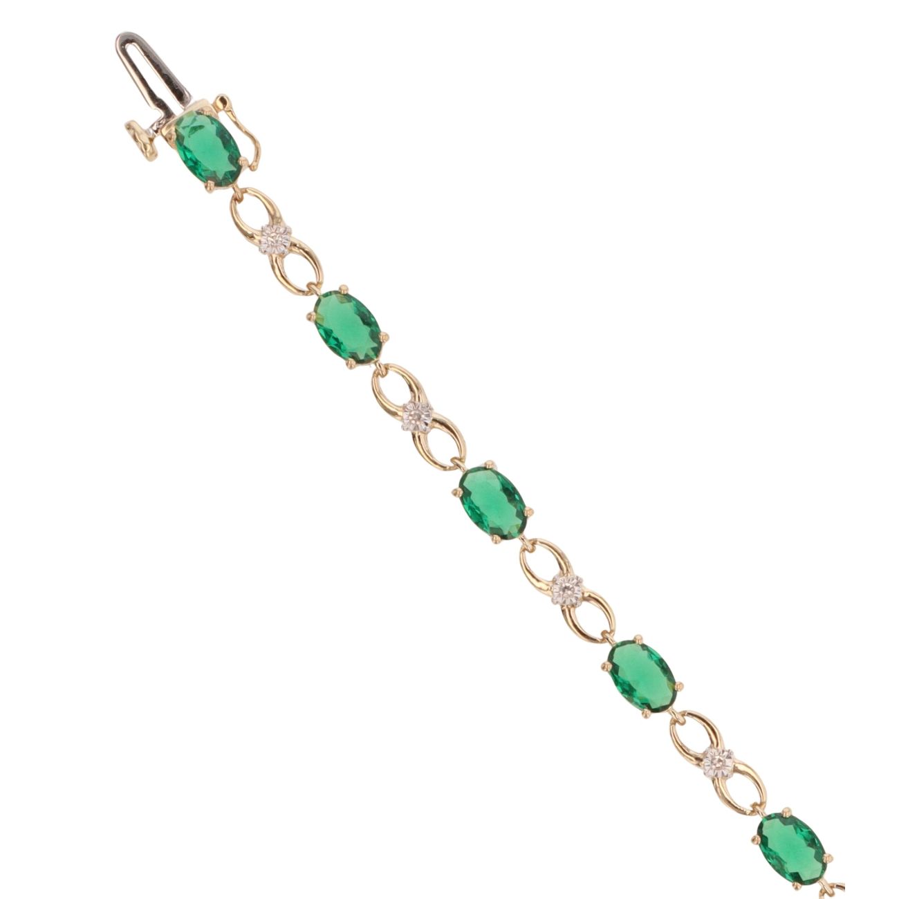 9ct Yellow Gold 0.06ct Diamond And Created Emerald Bracelet 7"