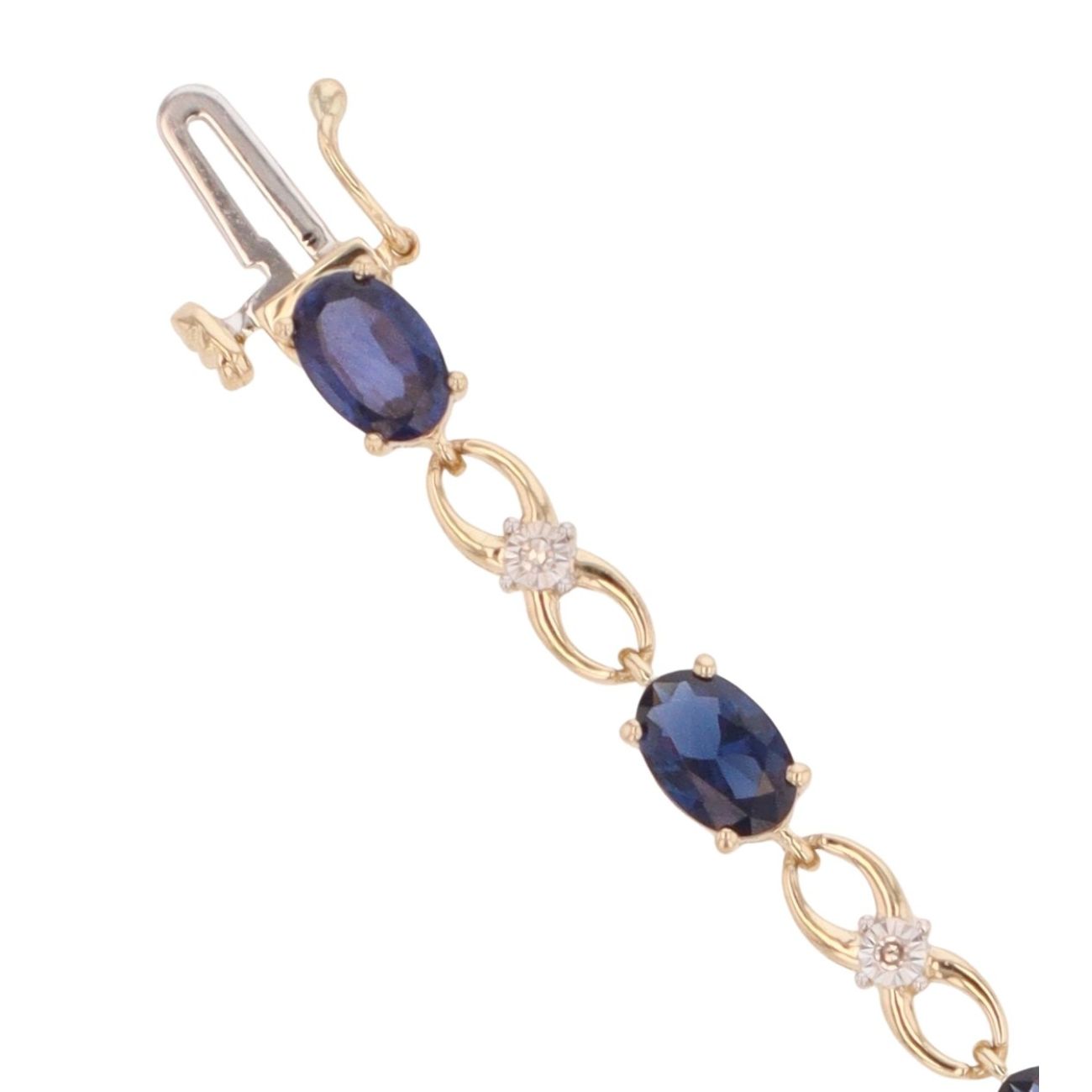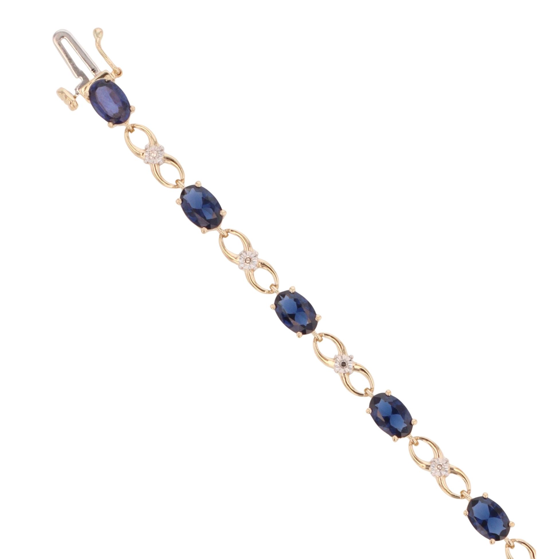 9ct Yellow Gold 0.06ct Diamond And Created Sapphire Bracelet 7"