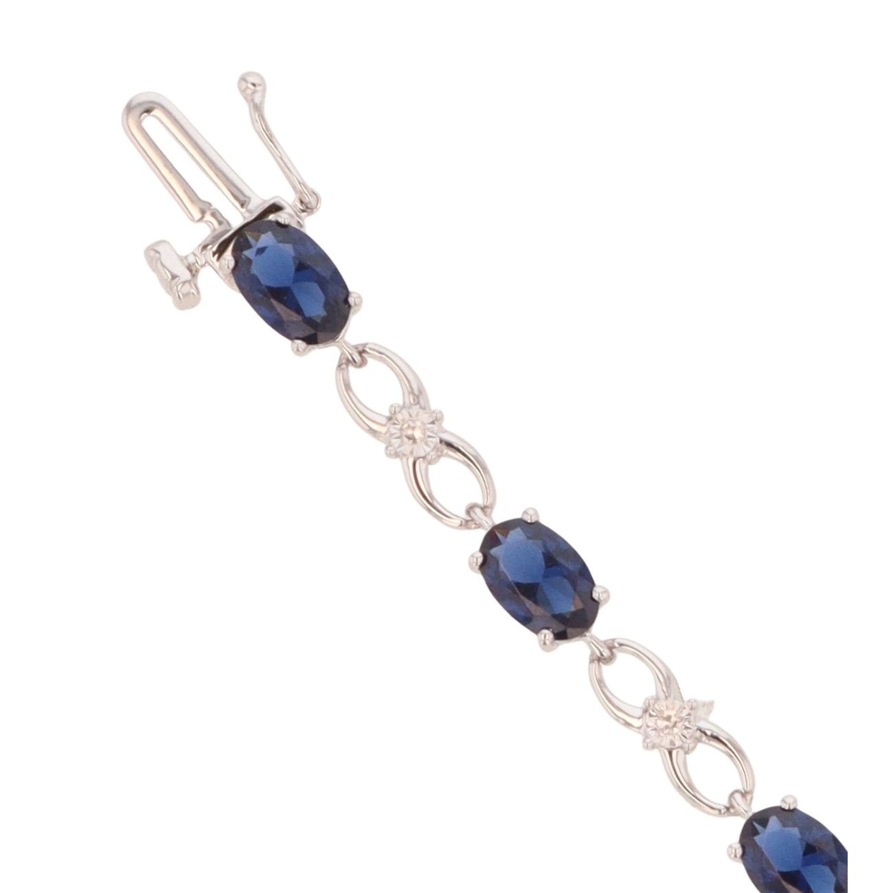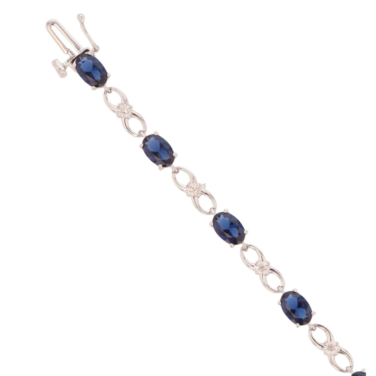9ct Yellow Gold 0.06ct Diamond And Created Sapphire Bracelet 7"