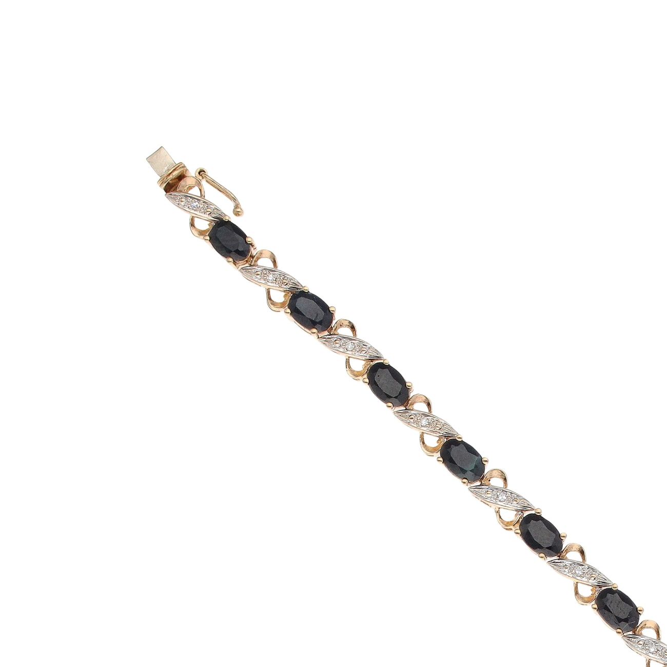 9ct Yellow Gold 0.07ct Diamond And Sapphire Bracelet 7"