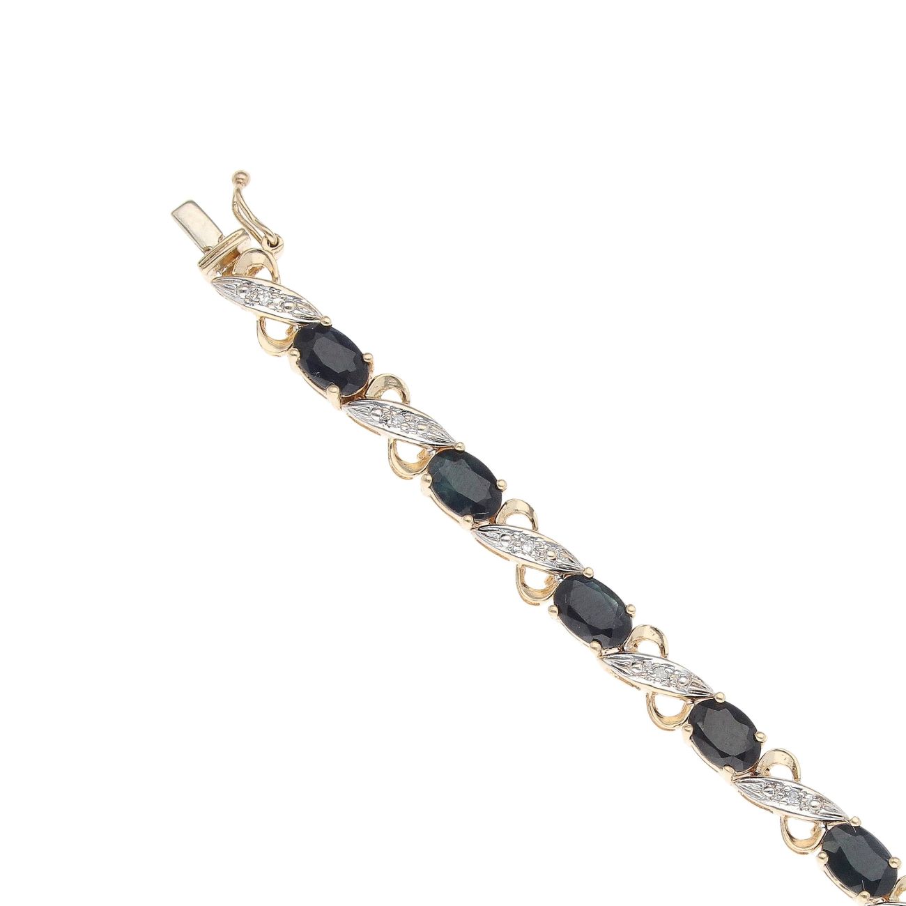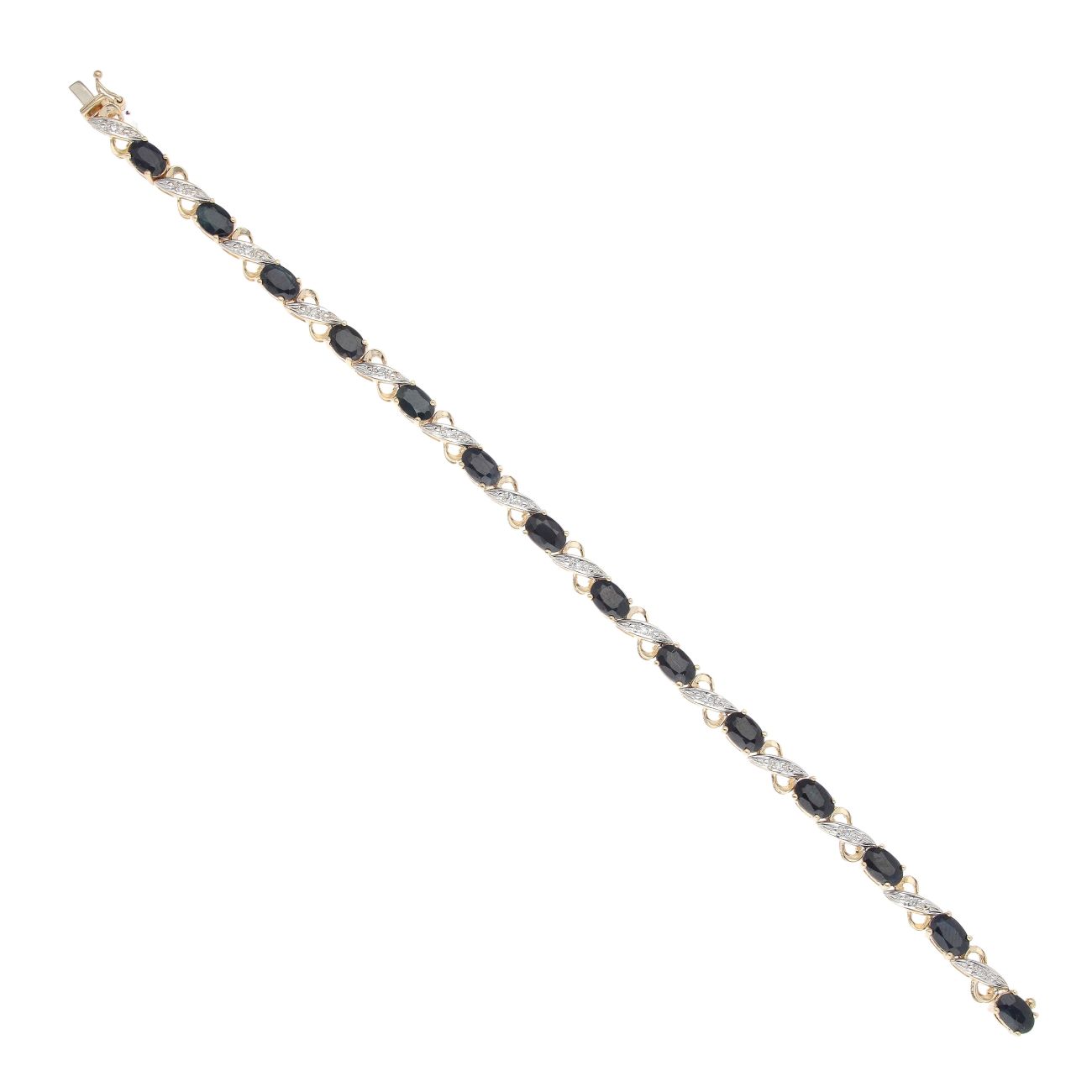 9ct Yellow Gold 0.10ct Brilliant Cut Diamond And Sapphire Bracelet 7"