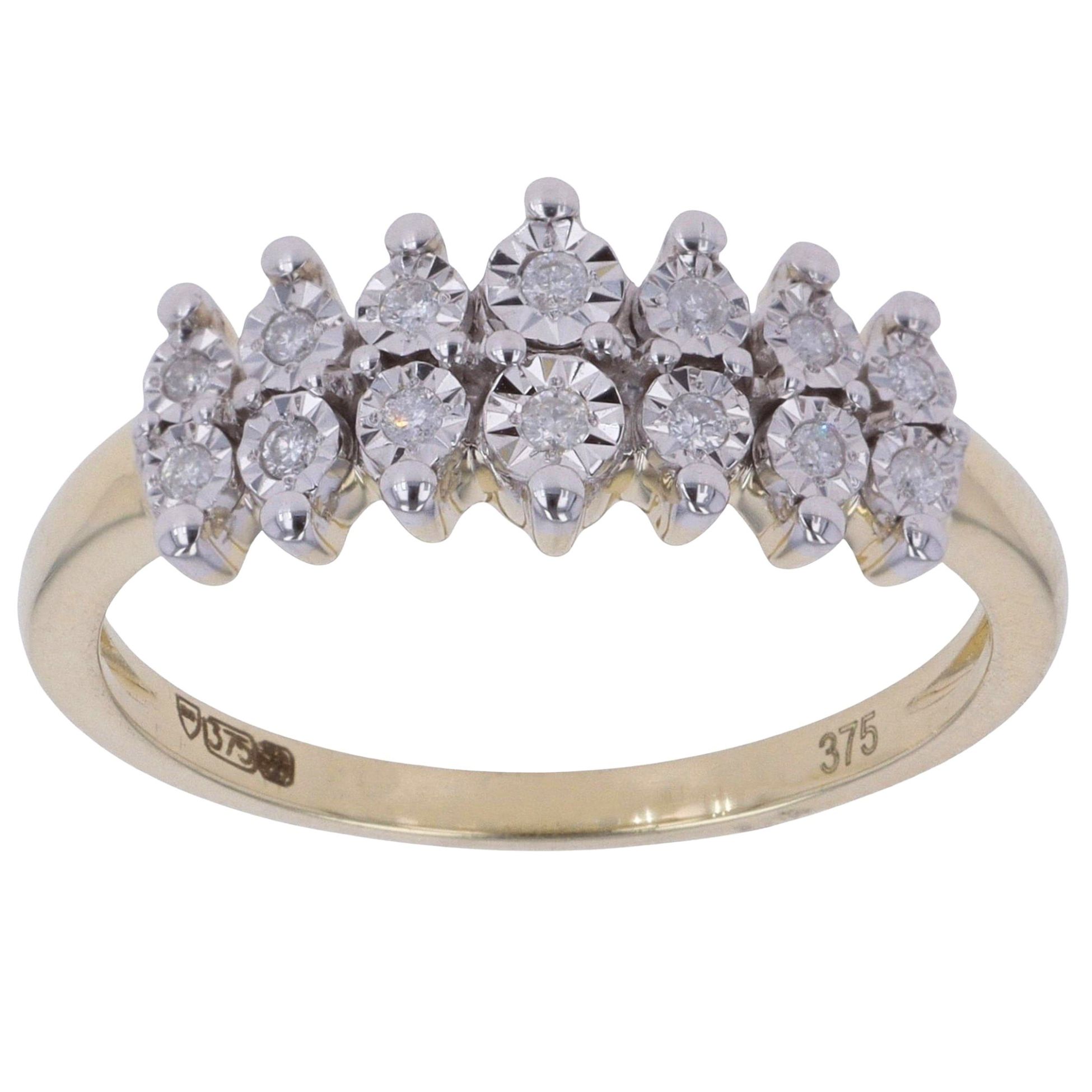 9ct Yellow Gold 0.10ct Brilliant Cut Diamond Cluster Ring
