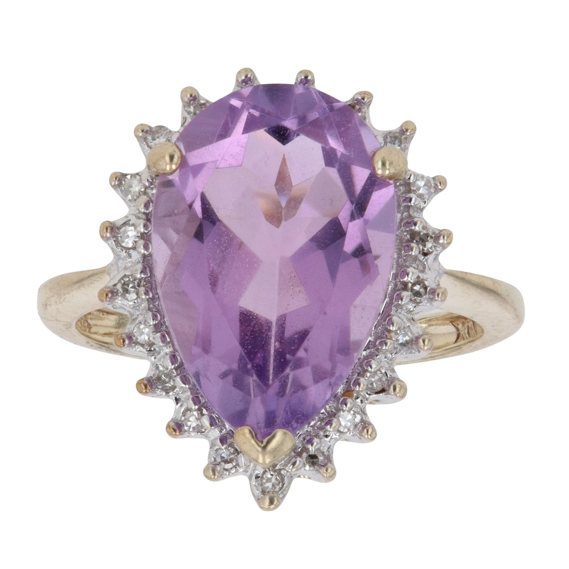 9ct Yellow Gold 0.10ct Diamond And Amethyst Cluster Ring