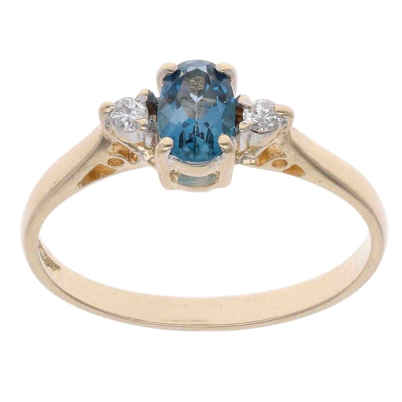 9ct Yellow Gold 0.10ct Diamond and Blue Topaz Dress Ring