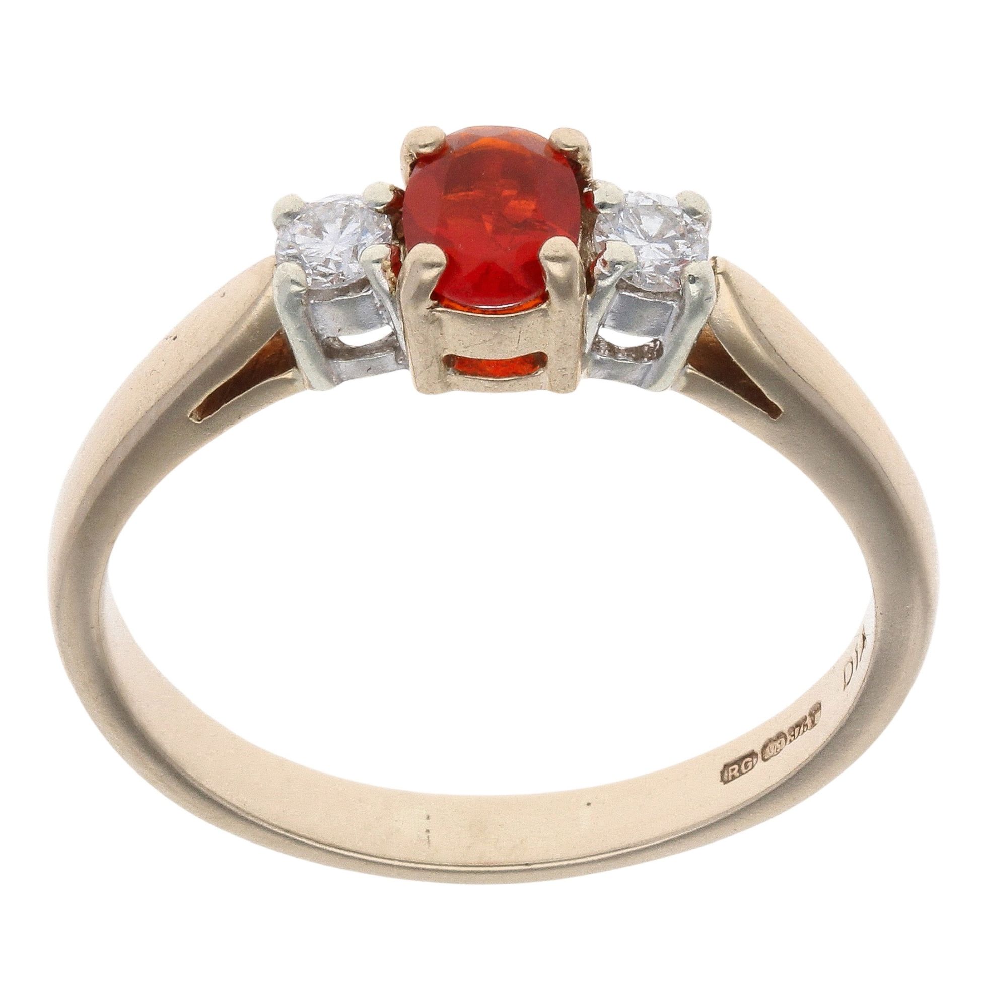 9ct Yellow Gold 0.10ct Diamond And Fire Opal Ring