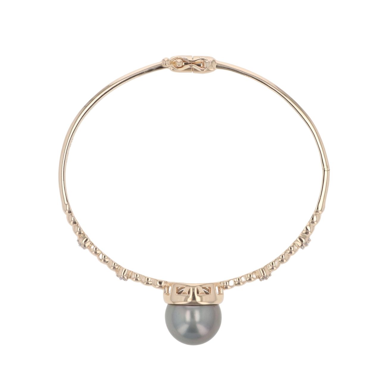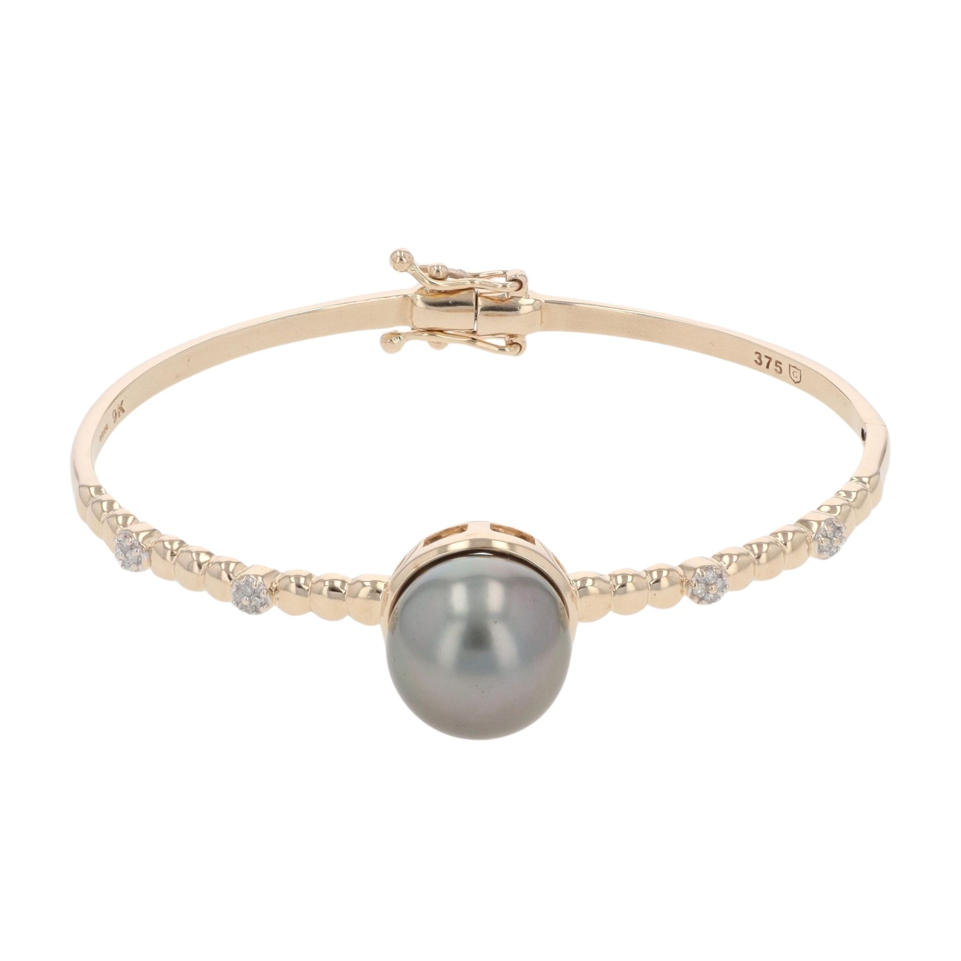 9ct Yellow Gold 0.10ct Diamond And Grey Cultured Pearl Bangle