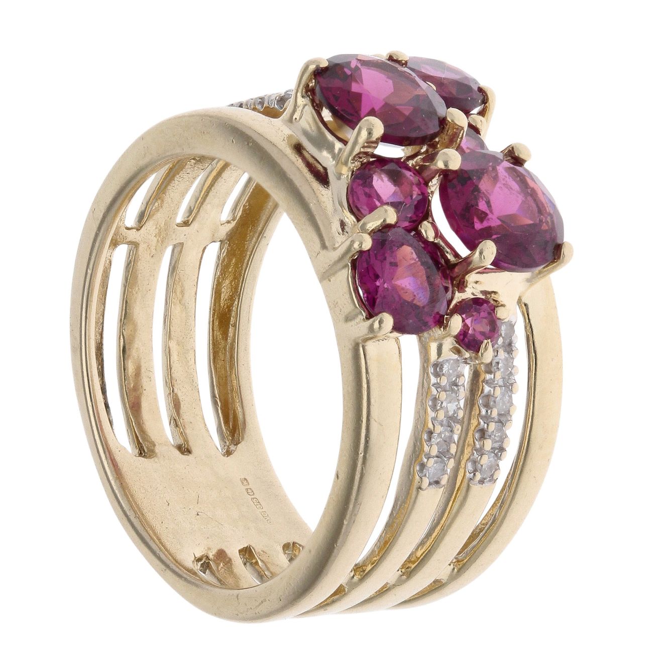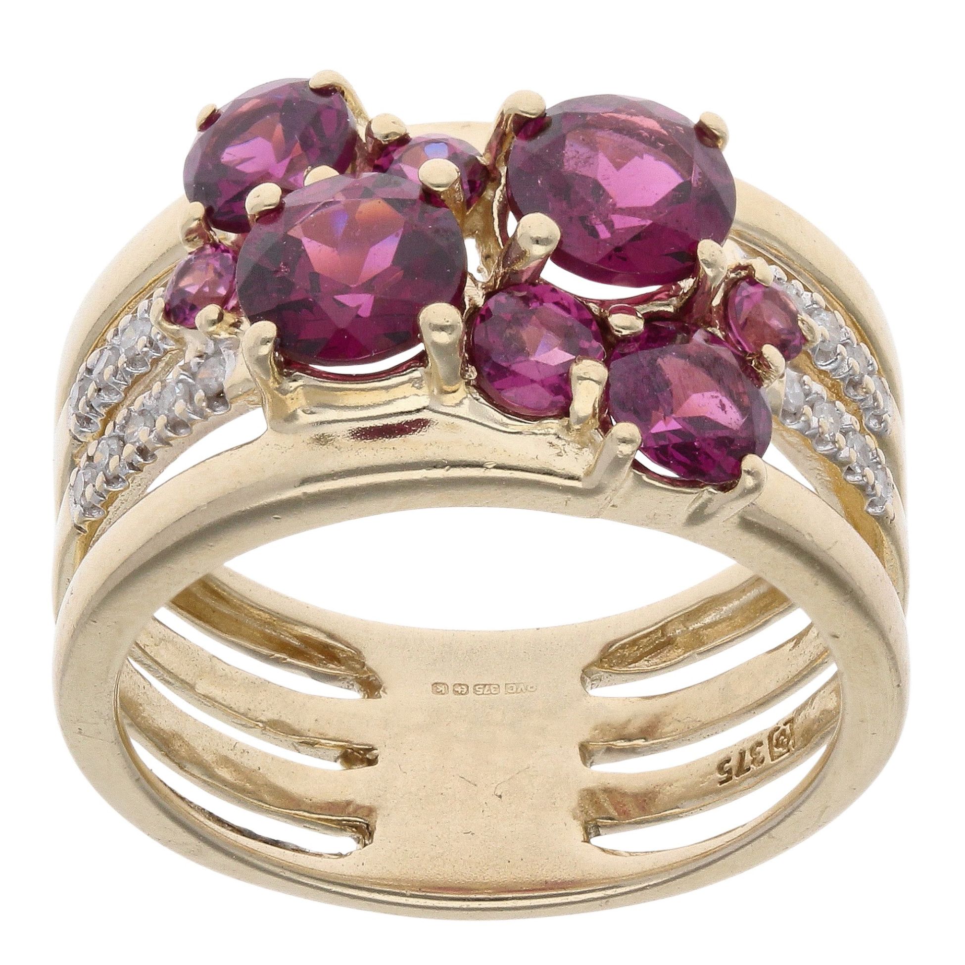9ct Yellow Gold 0.10ct Diamond and Purple Gemstone Cluster Ring