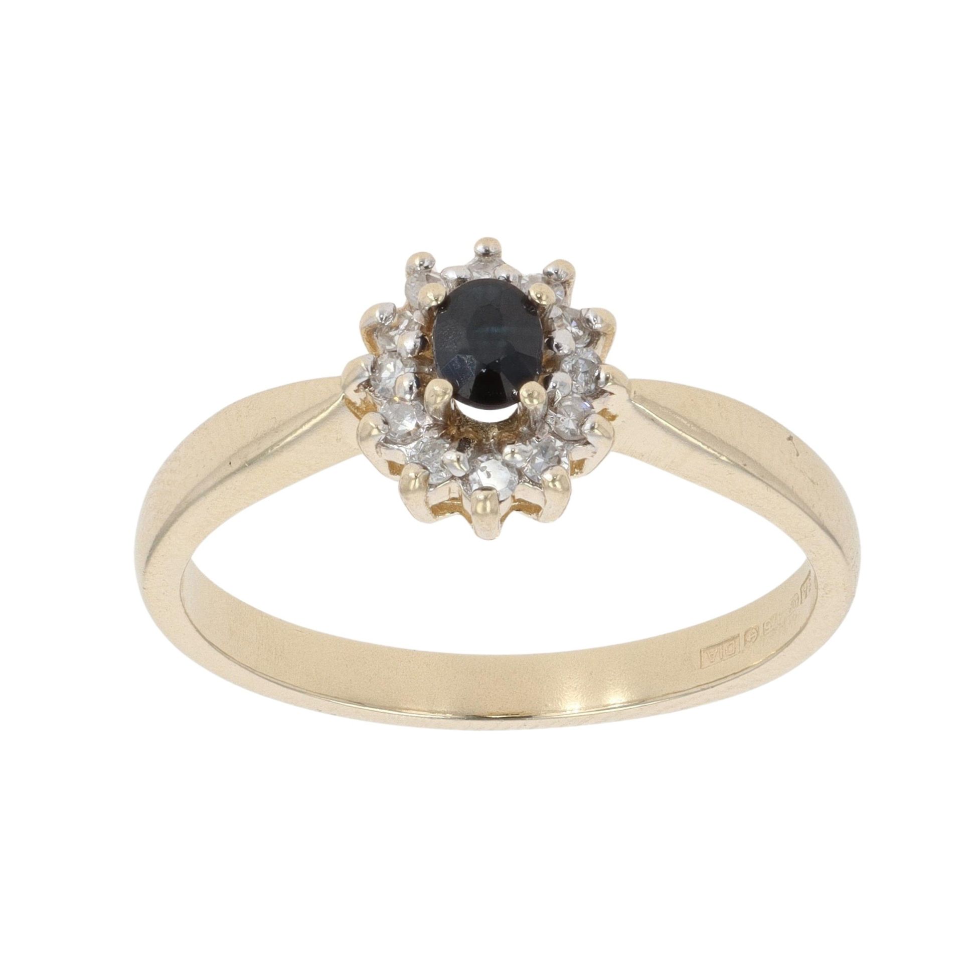 9ct Yellow Gold 0.10ct Diamond And Sapphire Cluster Ring