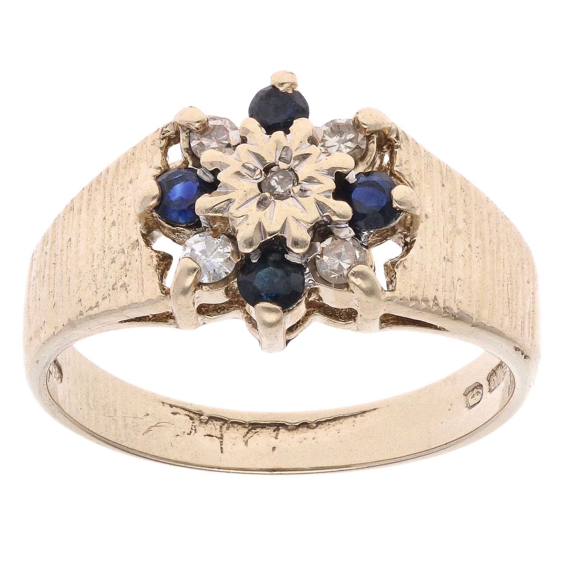 9ct Yellow Gold 0.10ct Sapphire Cluster Diamond Ring