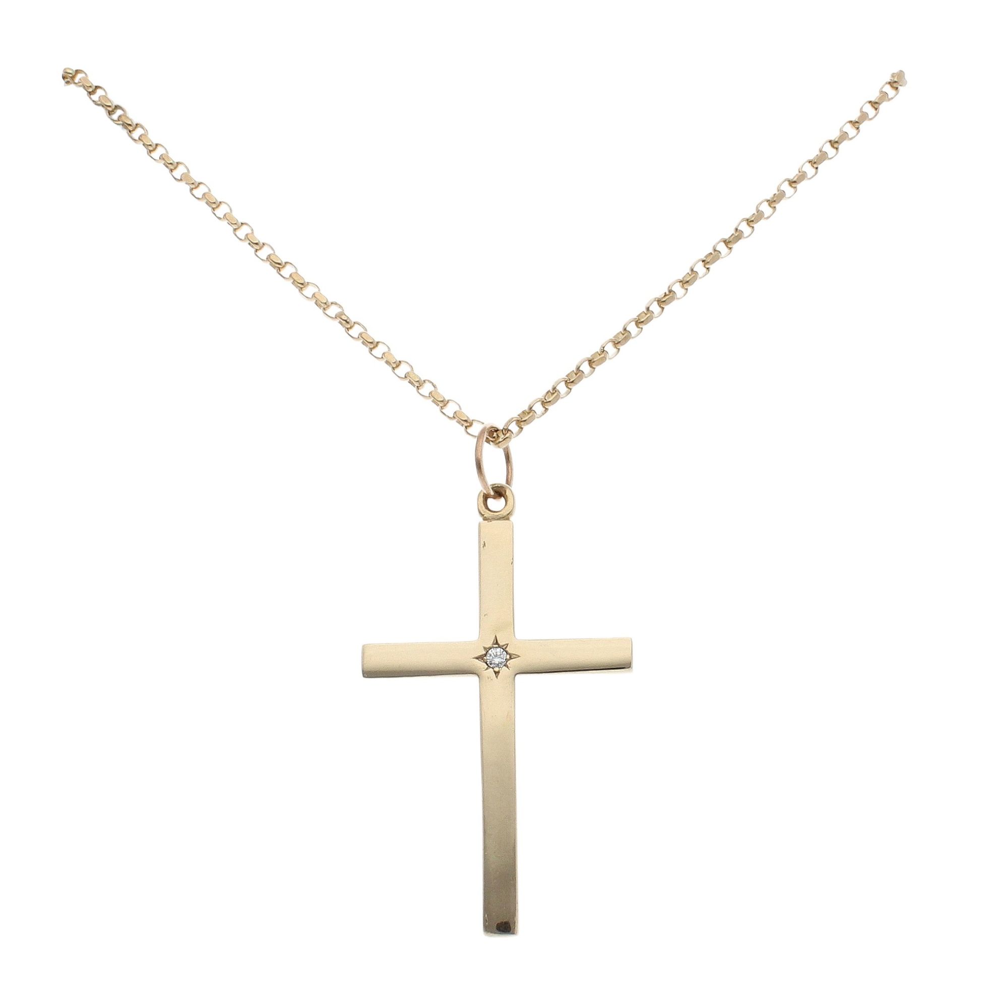 9ct Yellow Gold 0.10cts Diamond Cross Pendant And Chain 38"