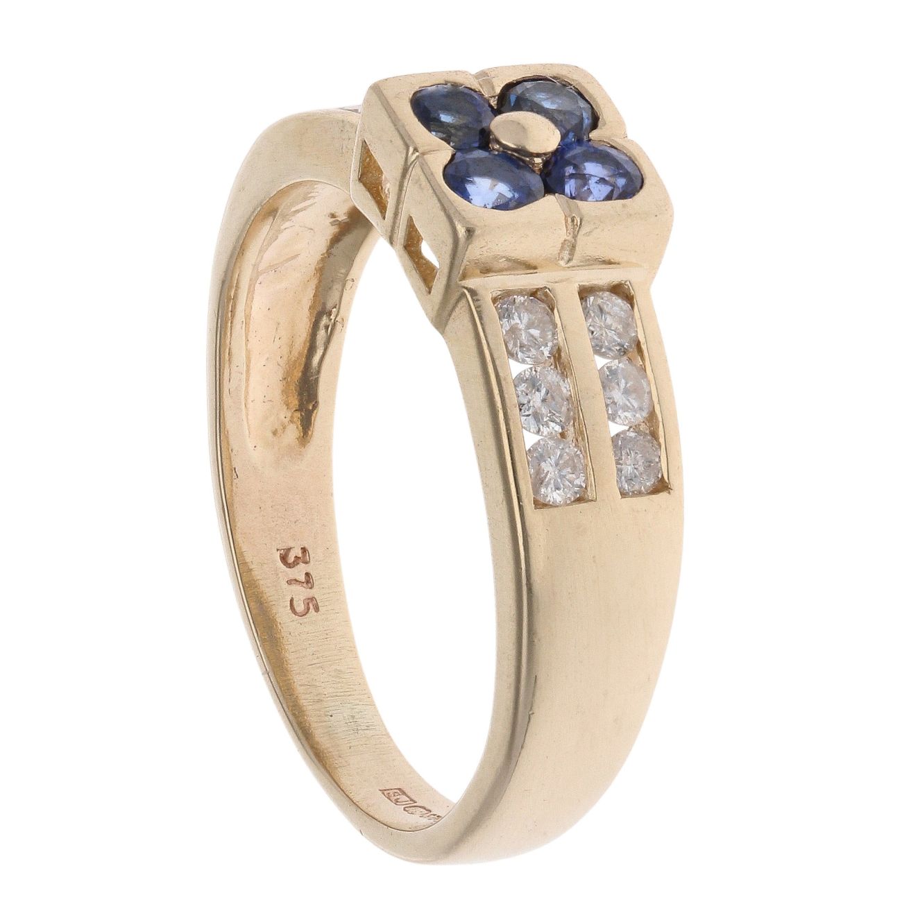 9ct Yellow Gold 0.12ct And Sapphire Cluster Ring