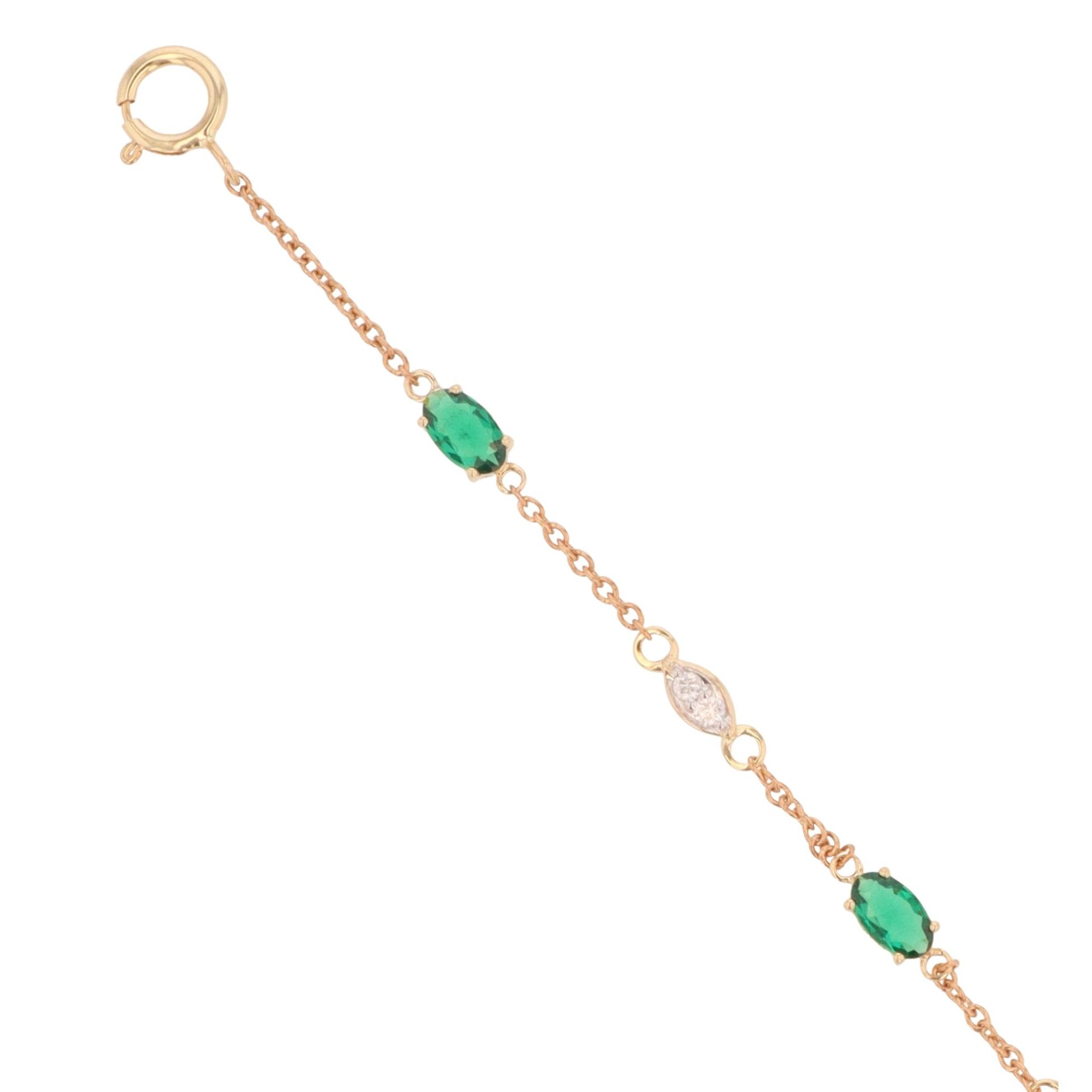 9ct Yellow Gold 0.12ct Diamond And Created Emerald Bracelet 7"