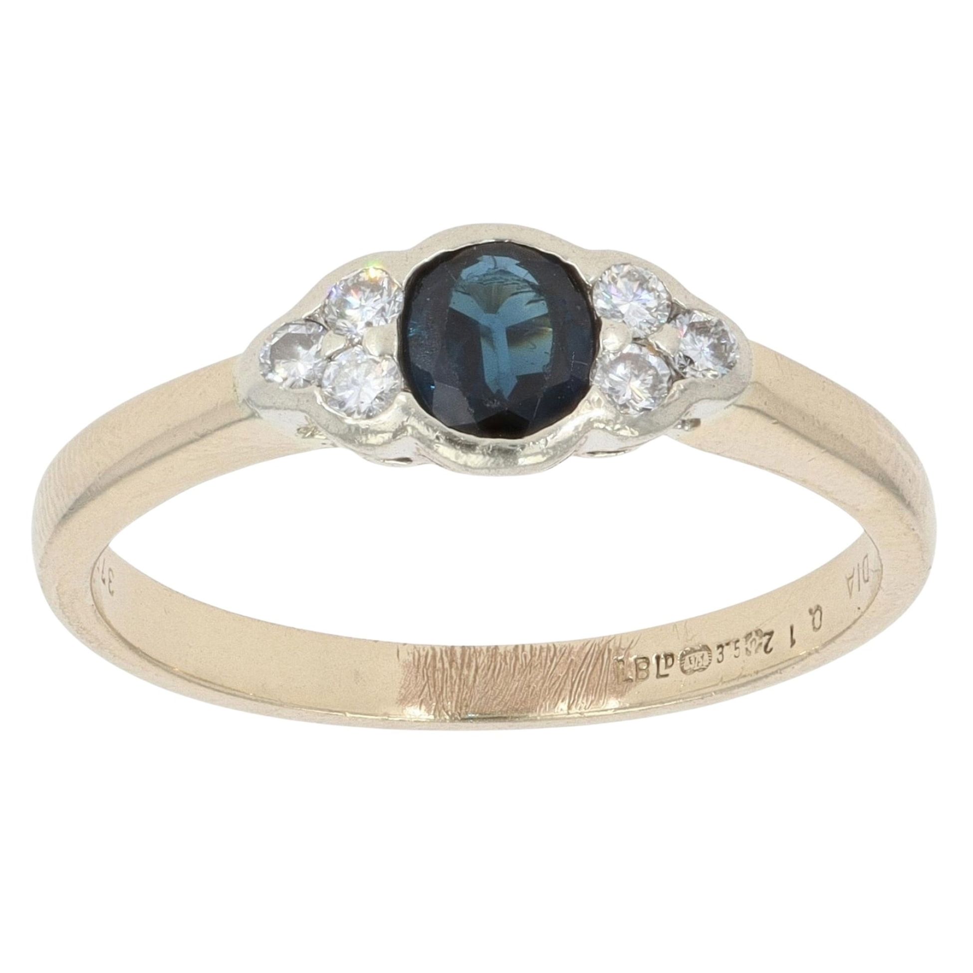 9ct Yellow Gold 0.12ct Diamond and Sapphire Dress Ring