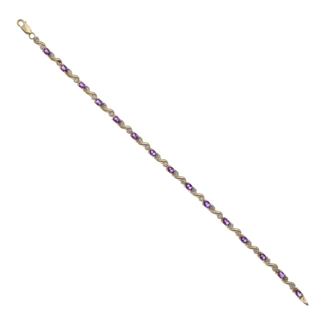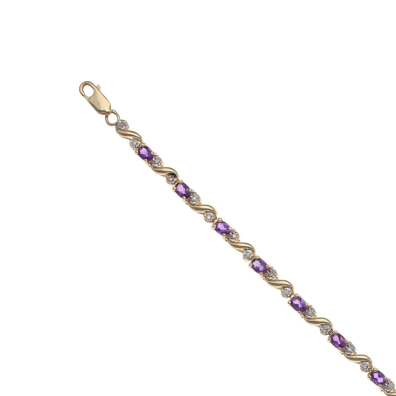 9ct Yellow Gold 0.15ct Diamond and Amethyst Bracelet 7.5"