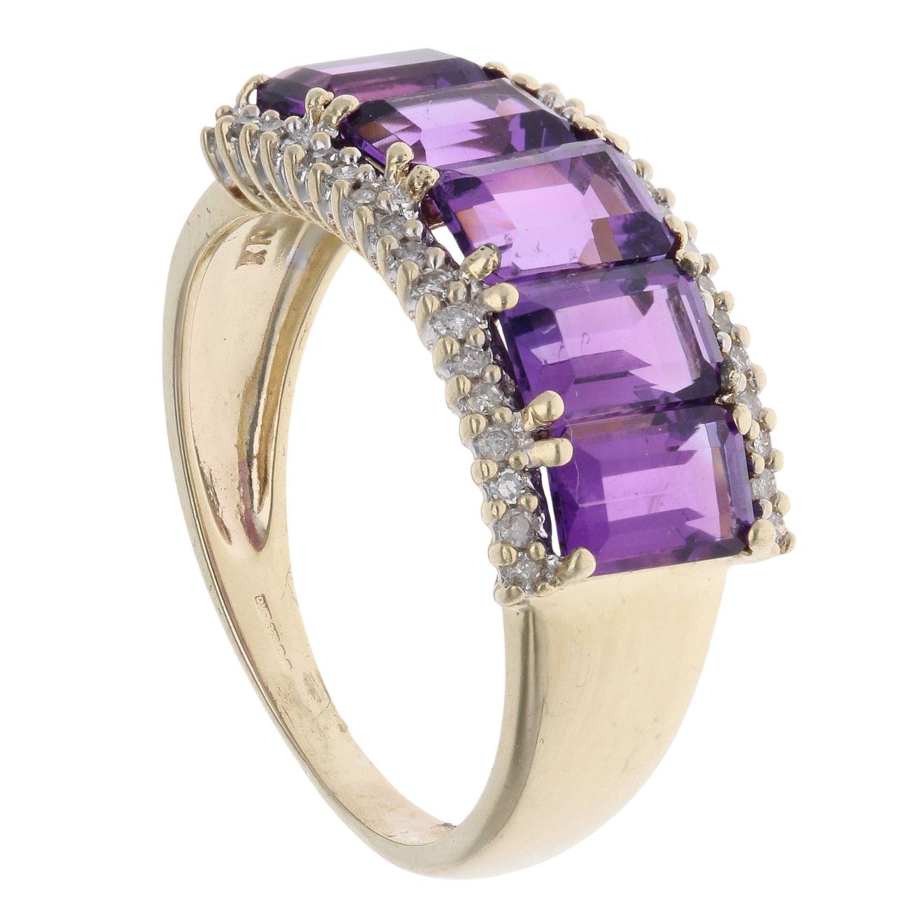 9ct Yellow Gold 0.15ct Diamond and Amethyst Five Stone Ring