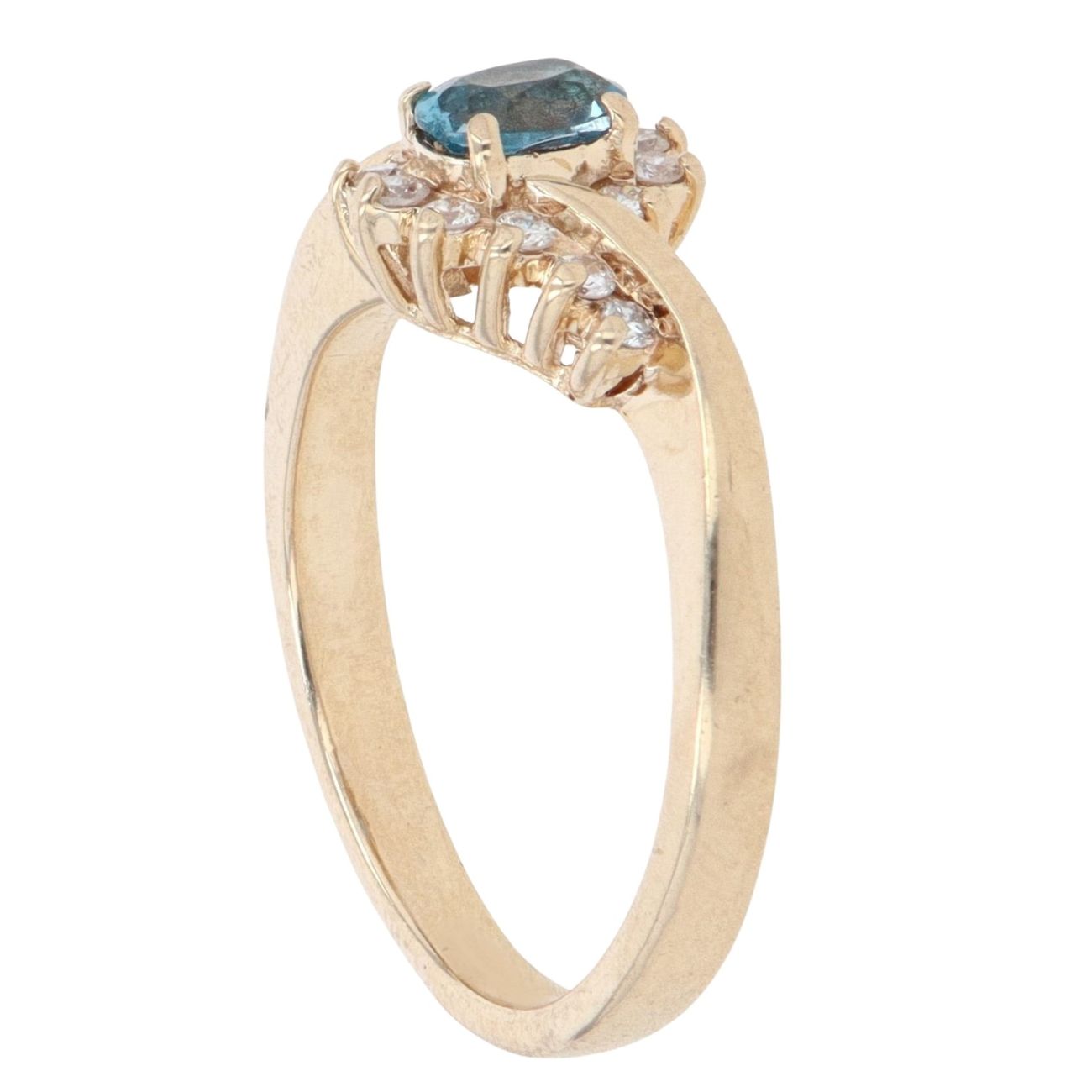 9ct Yellow Gold 0.15ct Diamond And Blue Gemstone Twist Dress Ring