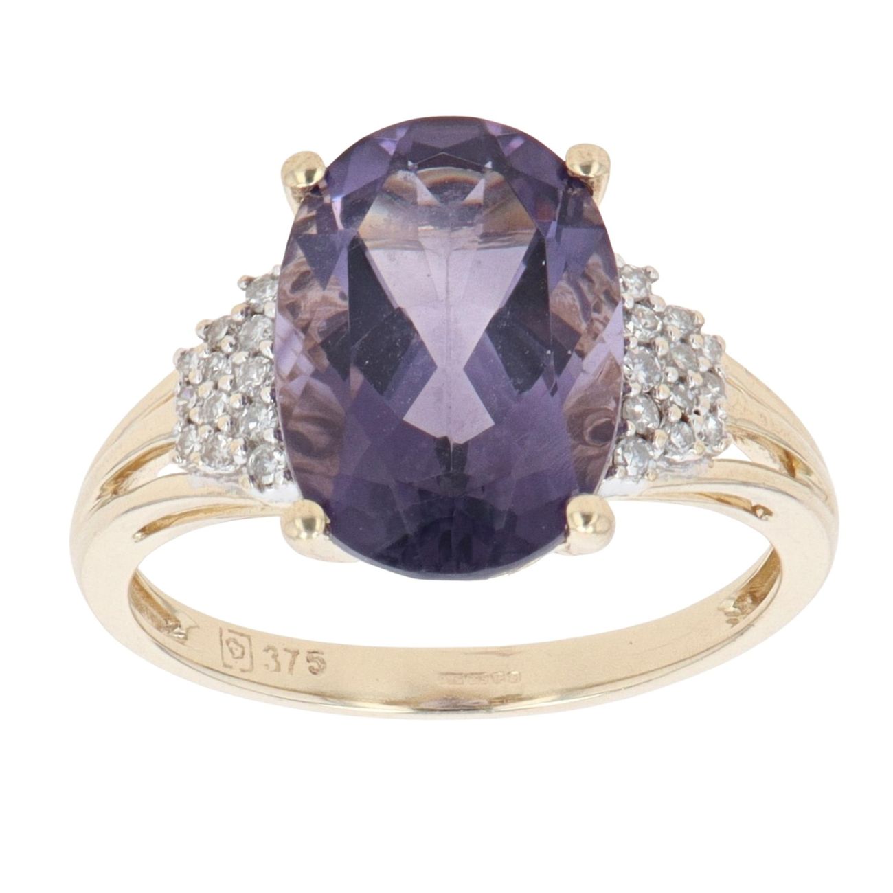 9ct Yellow Gold 0.15ct Diamond And Iolite Ring