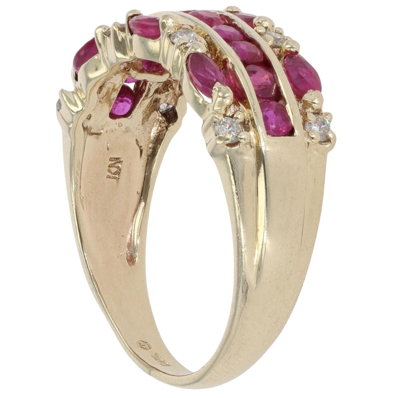 9ct Yellow Gold 0.15ct Diamond and Ruby Three Row Ring