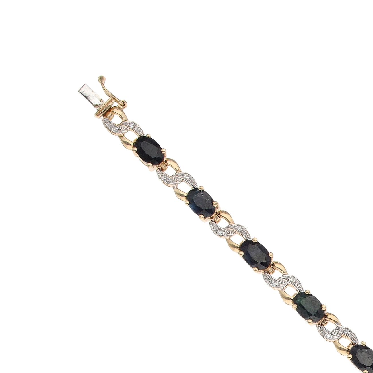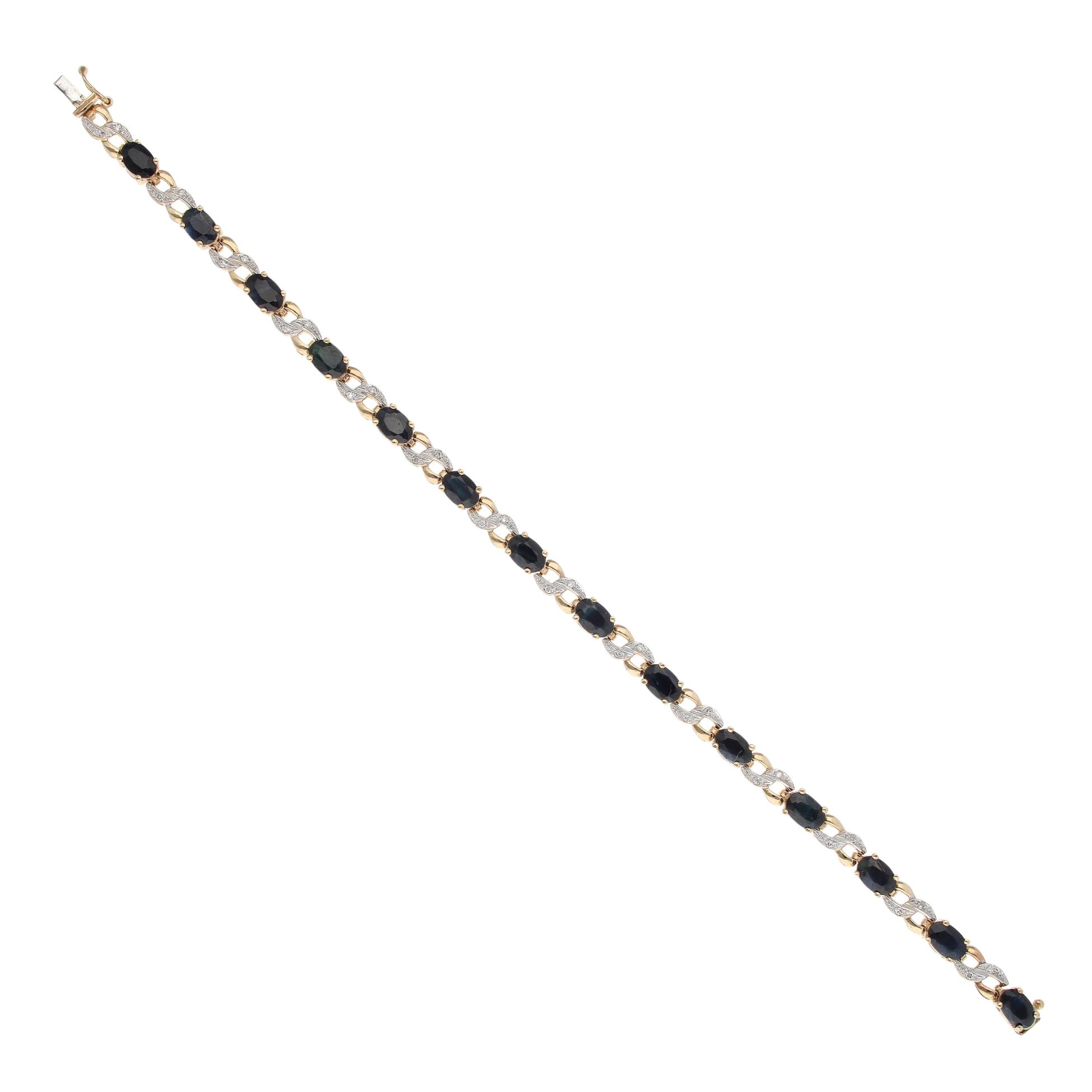 9ct Yellow Gold 0.15ct Diamond and Sapphire Bracelet 7"
