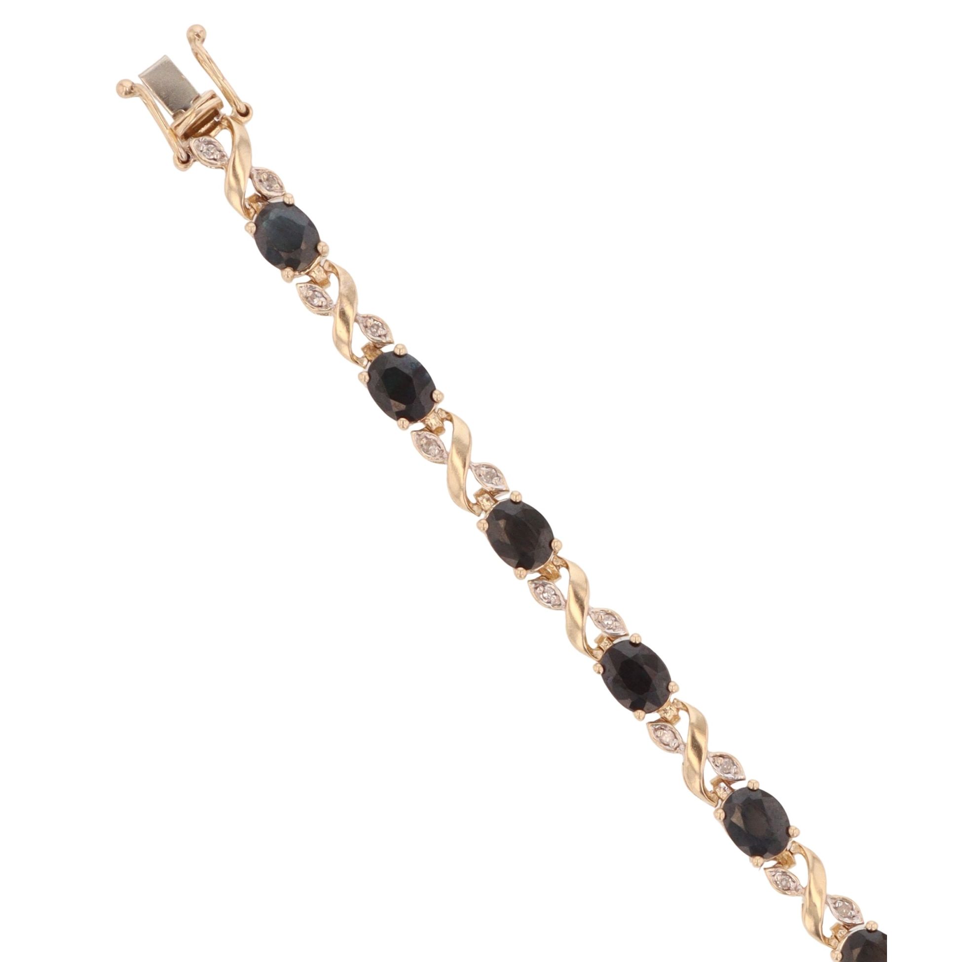 9ct Yellow Gold 0.15ct Diamond and Sapphire Bracelet 7"