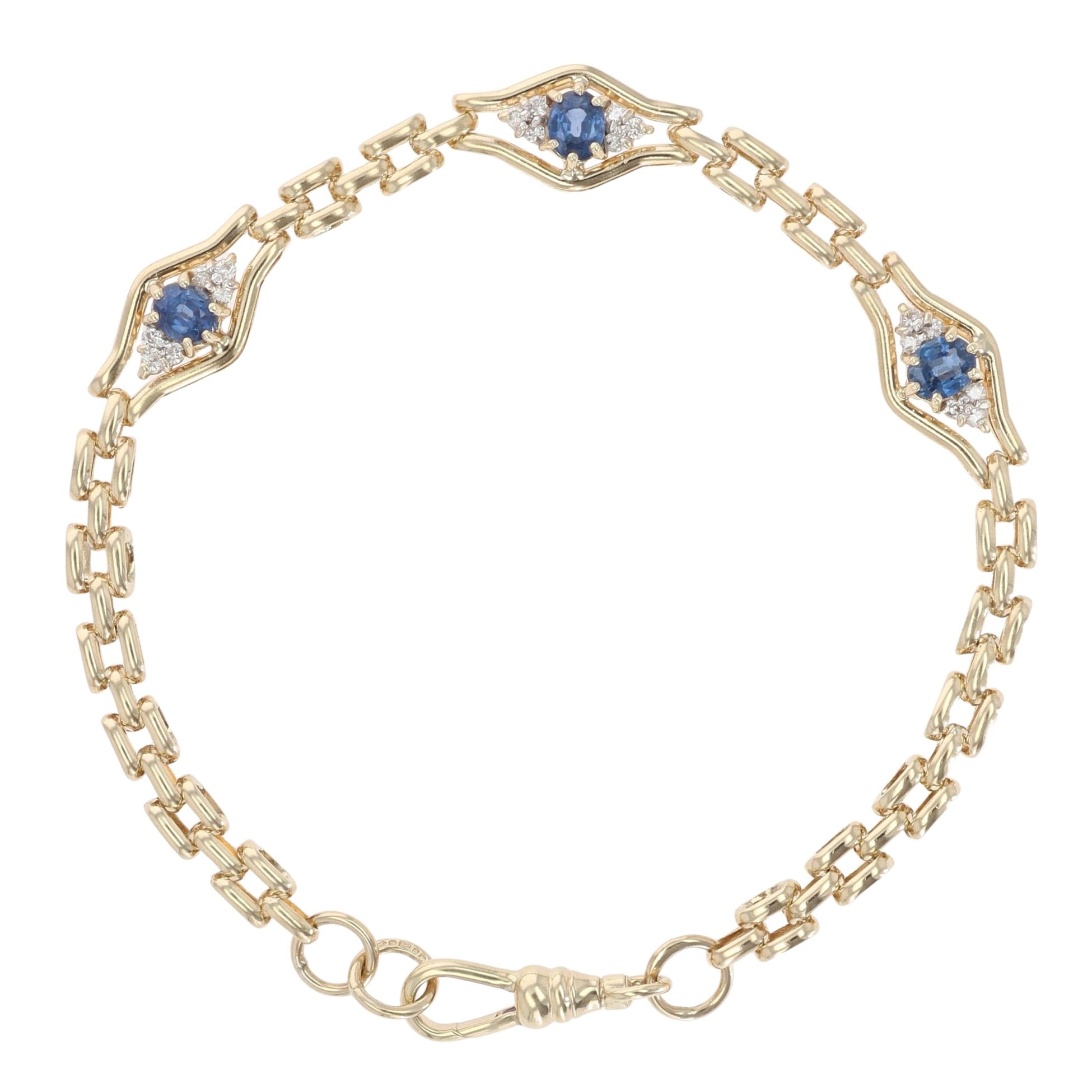 9ct Yellow Gold 0.15ct Diamond and Sapphire Cluster Bracelet 7.5"