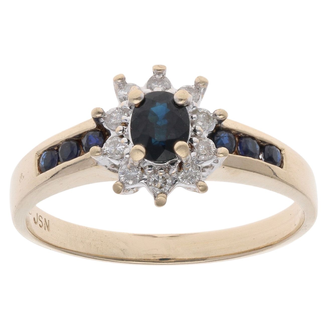 9ct Yellow Gold 0.18ct Diamond and Sapphire Cluster Ring