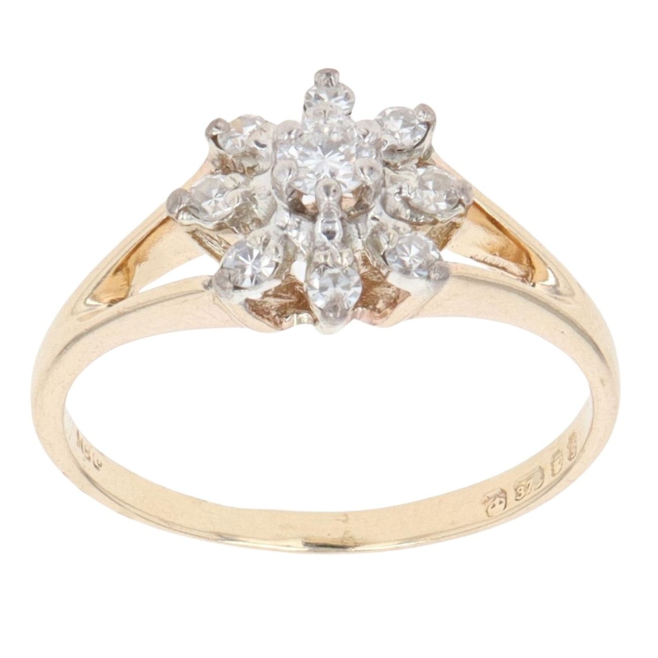 9ct Yellow Gold 0.20ct Brilliant Cut Diamond Cluster Ring