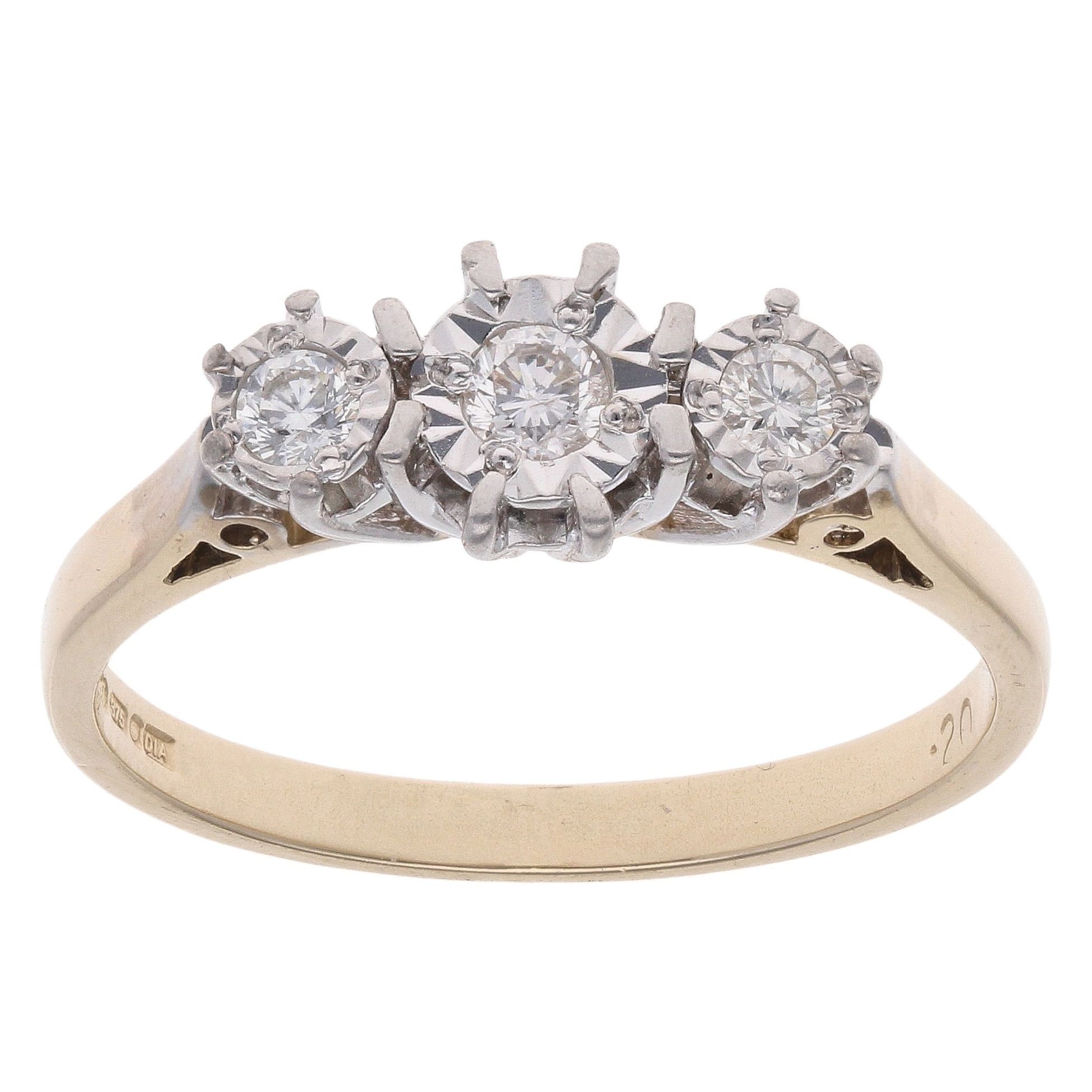 9ct Yellow Gold 0.20ct Brilliant Cut Diamond Trilogy Ring