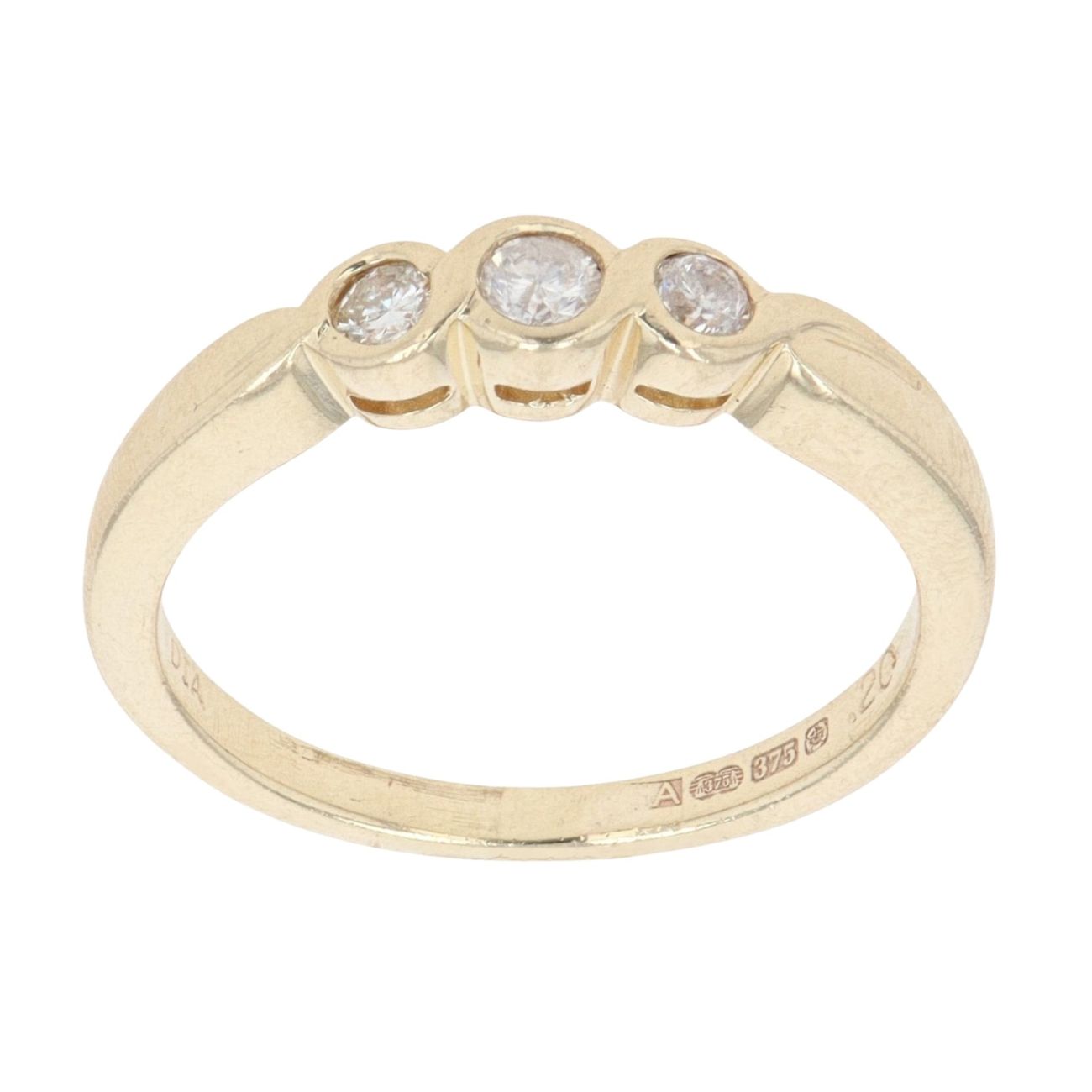 9ct Yellow Gold 0.20ct Brilliant Cut Diamond Trilogy Ring