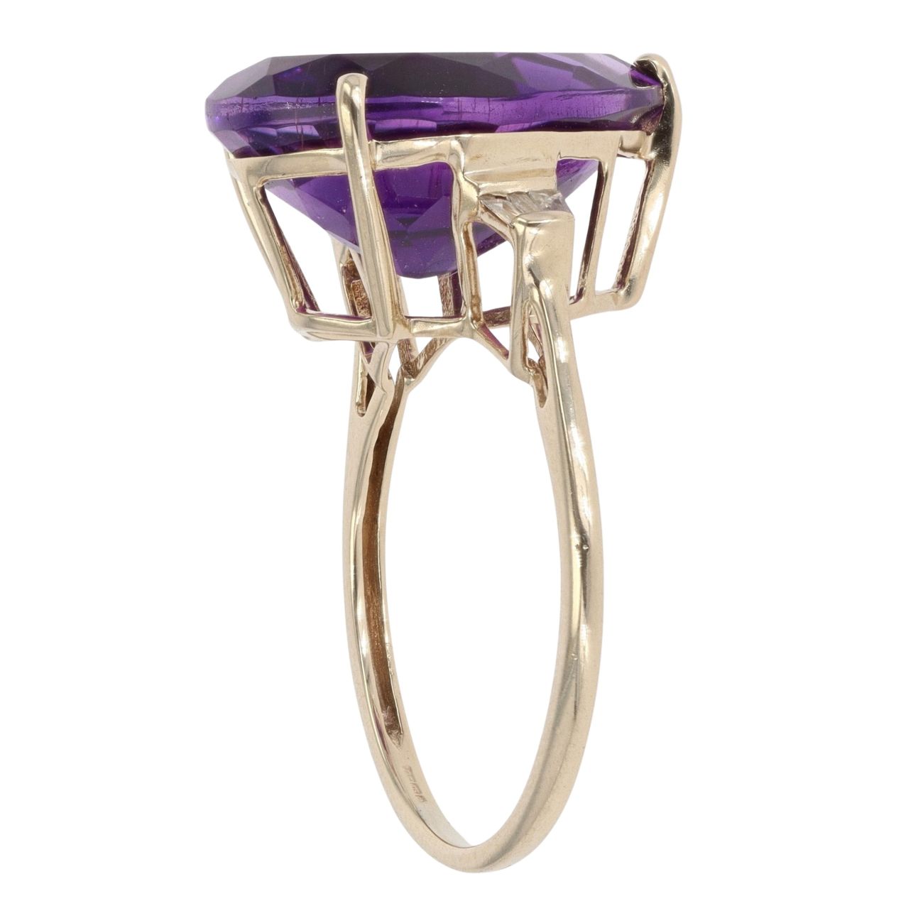 9ct Yellow Gold 0.20ct Diamond and Amethyst Pear Ring